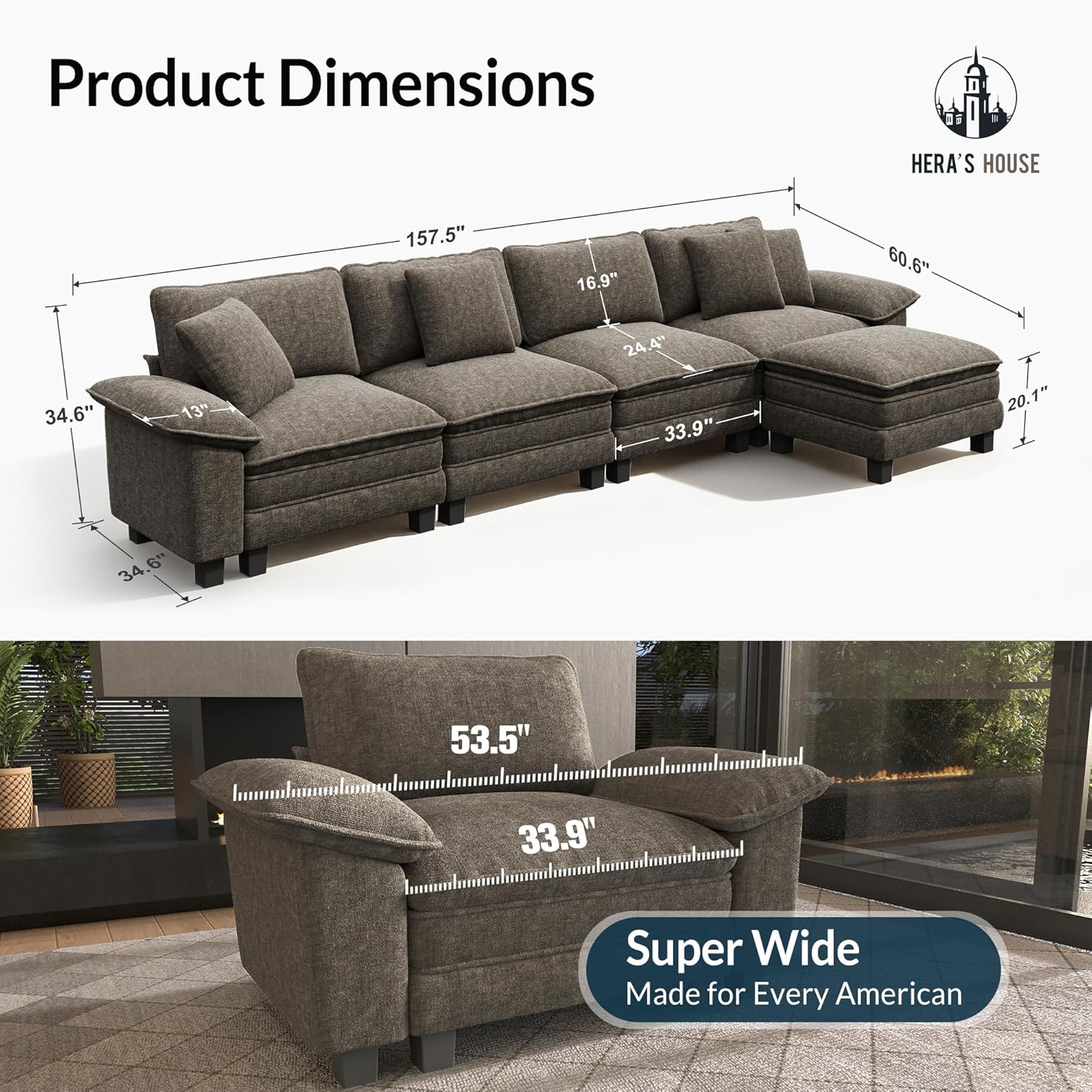 - HERA'S HOUSE 158" Modular Sectional Sofa, Oversized L Shaped Couches for Living Room, Comfy Cloud Couch with Ottoman, 5-Seater Deep Seat Sofa with Throw Pillow, Chenille Ash B0FT82W78Q