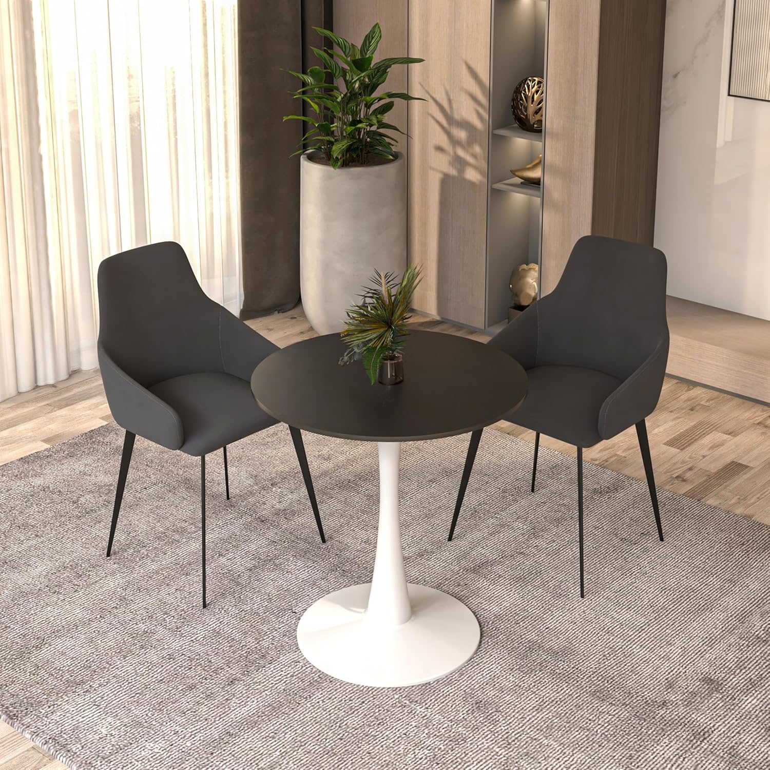1. MINIMALIST DESIGN : This modern round dining table features a sleek, minimalist round tabletop and single pedestal base, creating an inclusive, conversation-friendly atmosphere in your dining room or kitchen. The clean, understated pedestal dining table style maximizes legroom, seating flexibility, and space-saving benefits—perfect for small spaces, apartments, or contemporary homes.