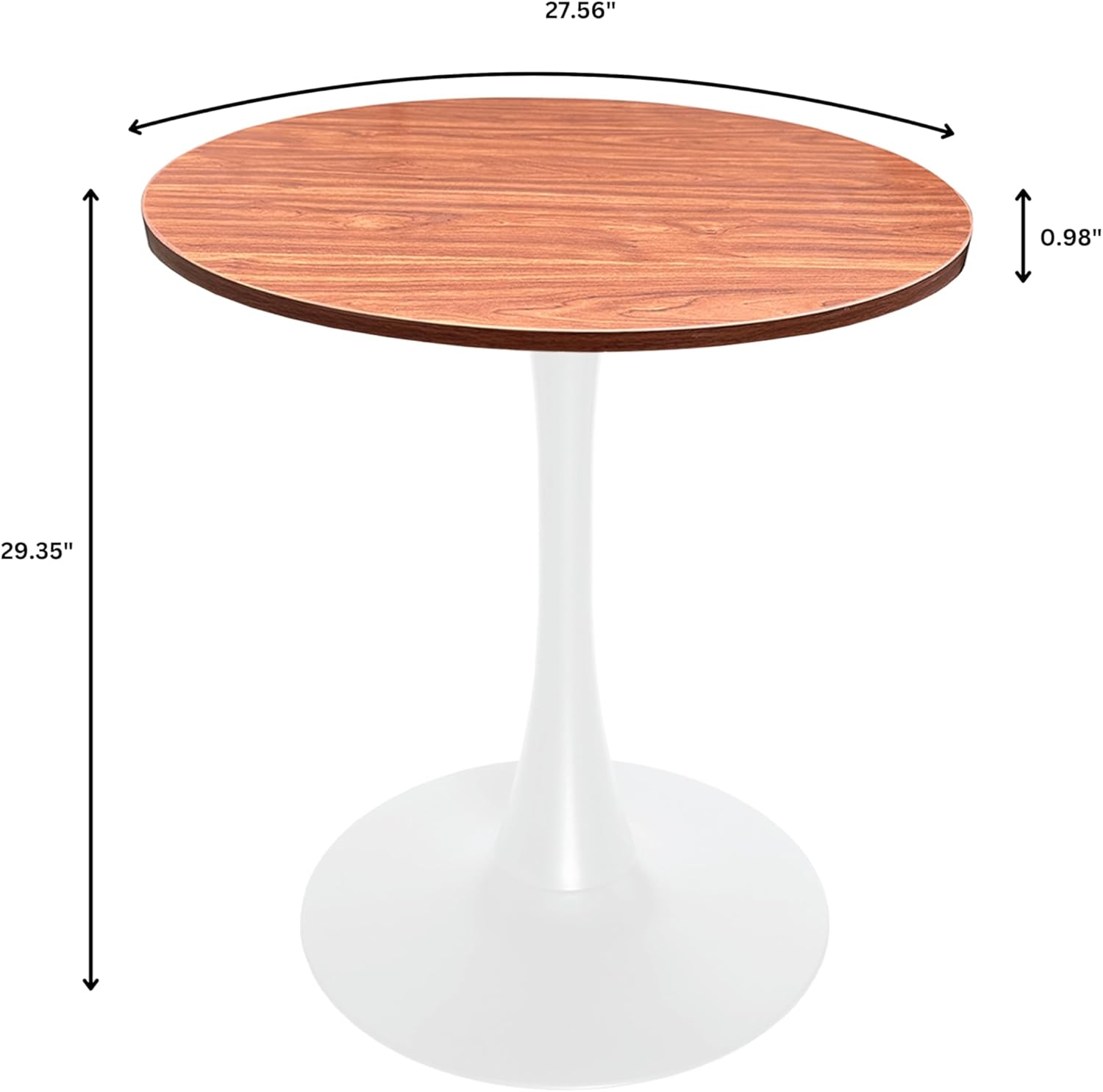 - LeisureMod Bristol 27" Wide Round Dining Table, Modern MDF Wood Top & White Metal Pedestal Base Gloss Finish Accent Table Mid-Century Café Table, Kitchen Dining Room Furniture, Cognac Brown B0CXBNNFTC