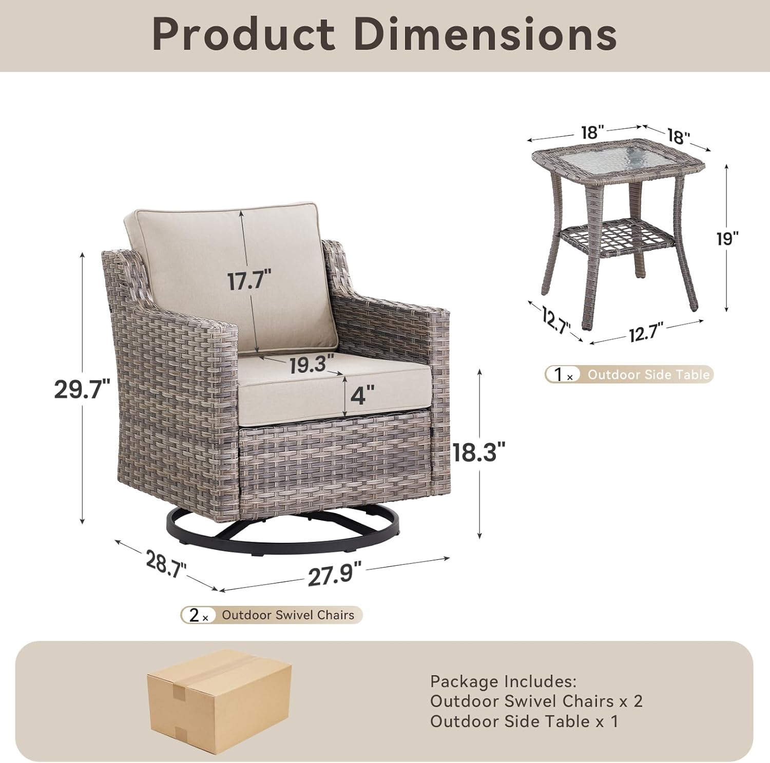 - AMCLOBA 3 Pieces Patio Furniture Set-High Back Swivel Patio Chairs Set of 2 with Outdoor Side Table Patio Table and Chairs Set for Porch Deck Balcony Garden Grey/Beige B0DTNYHXKB