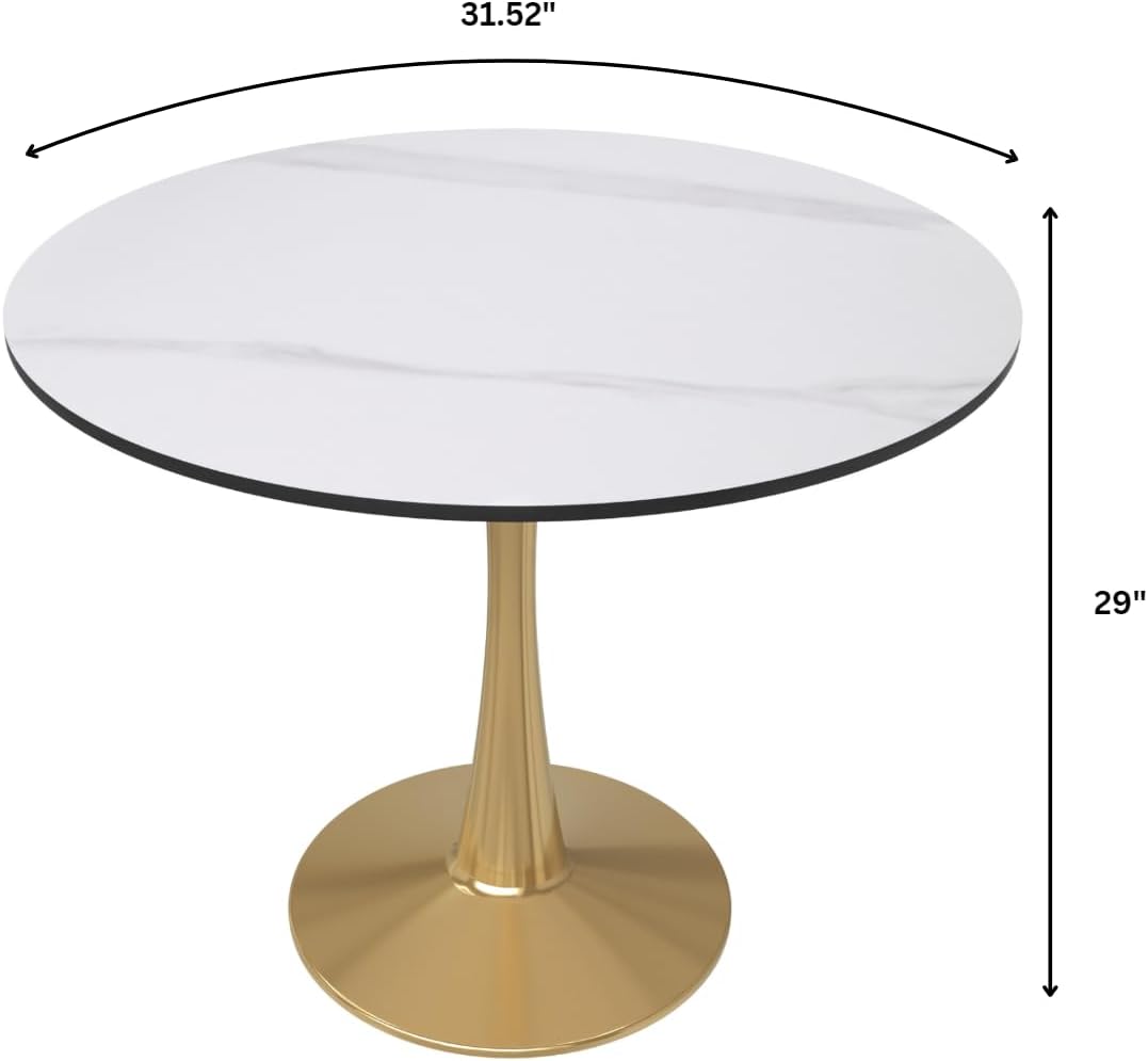 - LeisureMod Bristol 31" Round Dining Table in White Modern Sintered Stone Tabletop with Gold Pedestal Base, Mid-Century Accent Table for Kitchen, Café & Dining Room B0DBJQD2J6