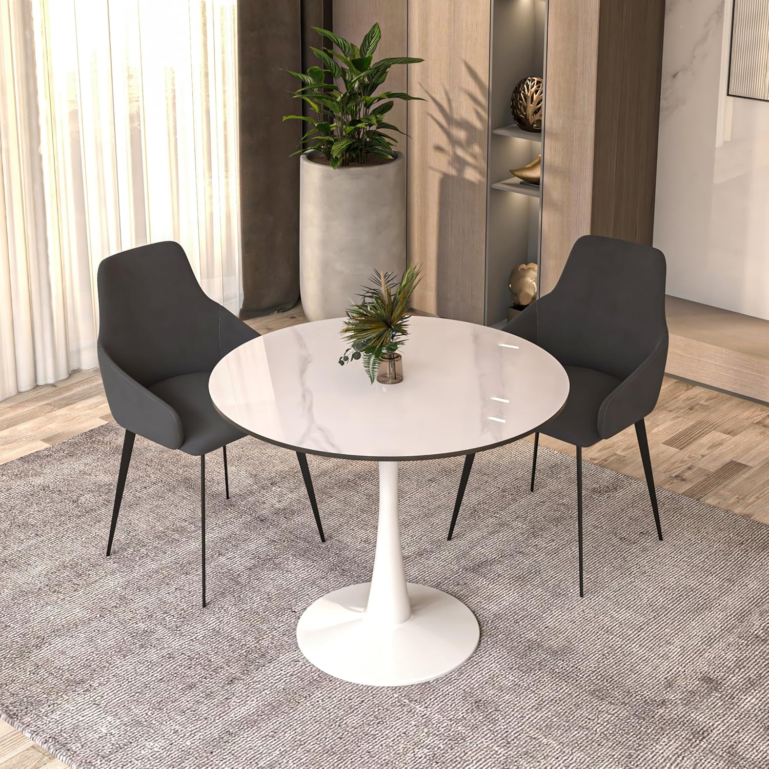 - LeisureMod Bristol 31" Wide Round Dining Table, Modern Sintered Stone Top & White Metal Pedestal Base Gloss Finish Accent Table Mid-Century Café Table, Kitchen Dining Room Furniture, White B0DB3K42CG