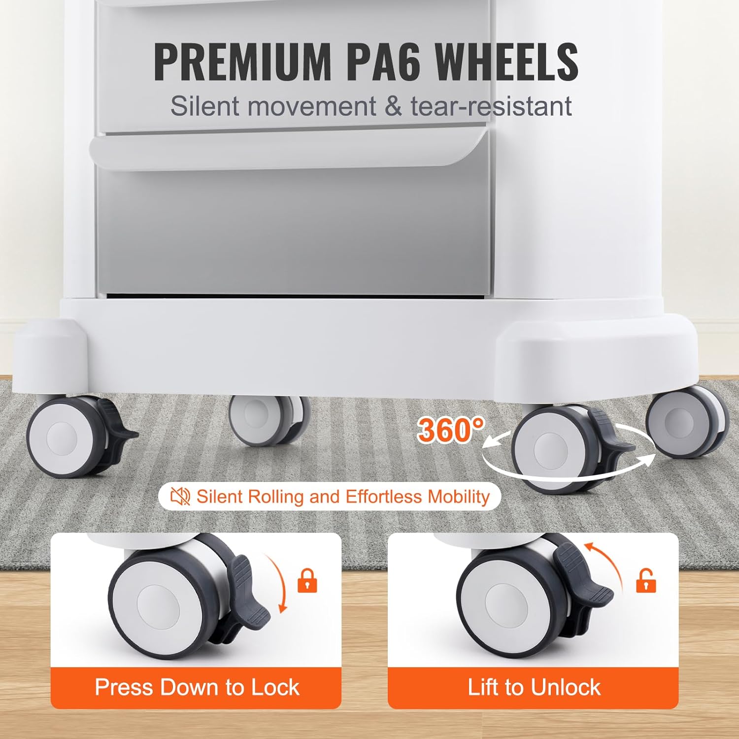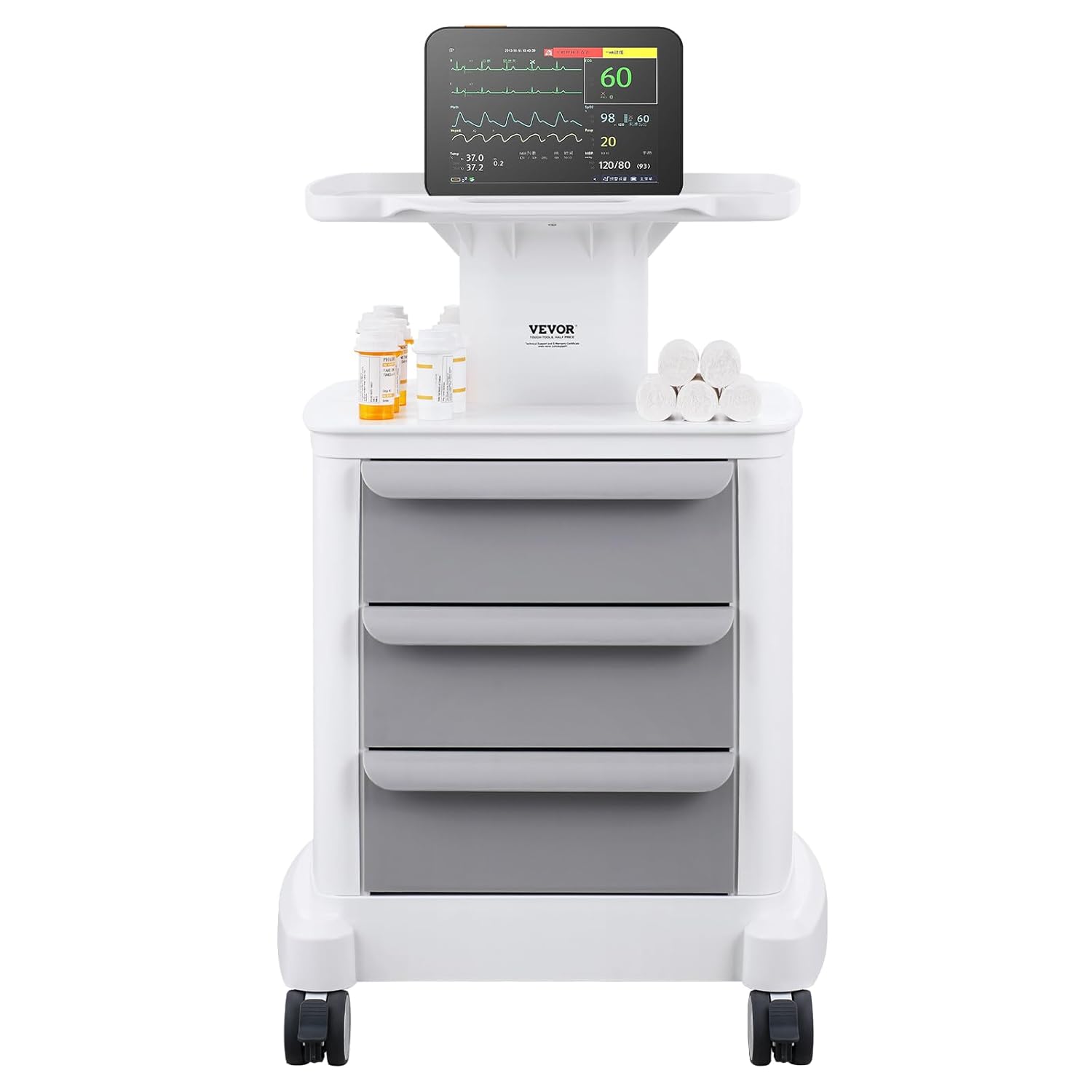 - VEVOR 4 Tiers Lab Carts, Lab Utility Cart with 3 Drawers & 1 Top Tray, Mobile Medical Cart with ABS Material, Lab Rolling Cart with 4 Silent Wheels for Lab, Clinic, Hospital, Salon, White B0DBSTNSSN