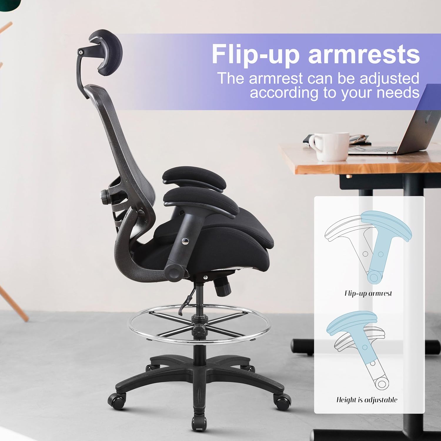 - BOLISS 400lbs Ergonomic Tall MeshDrafting Chair Chair, Bar Height Standing Desk Chair,Height Adjustable Armrest and Flipped Arms,Adjustable Lumbar Support Swivel Computer Task Chair (Pure Black) B0CYC3MHJG