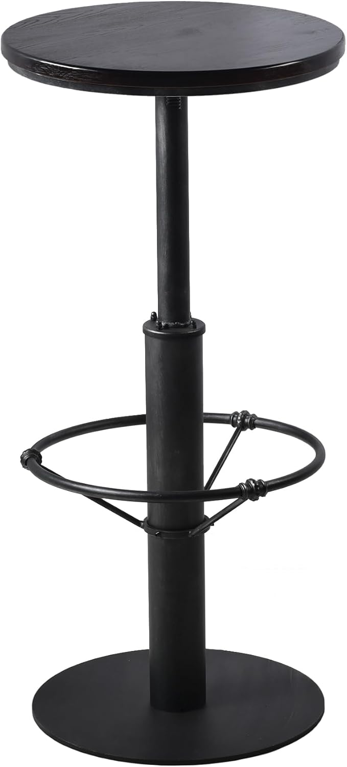 1. Features a round wooden top with natural grain, smooth silver grey iron body, and unique adjustable footrest rail,this bar table reflects the design aesthetics of industrial machinery.