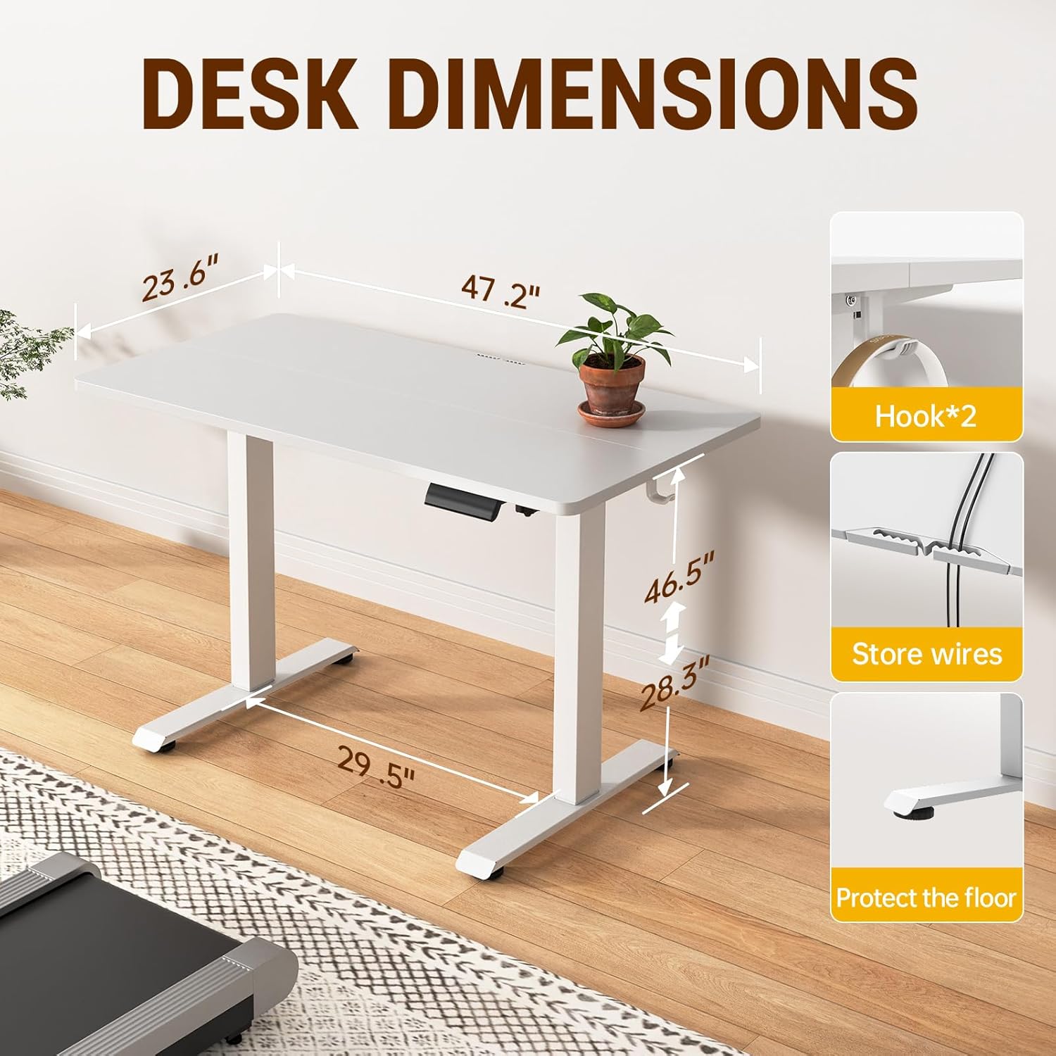 - Veken 47.2 Inch Large Electric Standing Desk, Heights Adjustable, Sit to Stand Up, Work Home Office Computer Table for Study, Walking Pad, Writing, and Games, Wooden Desktop Desks, White B0DWMDBTPH