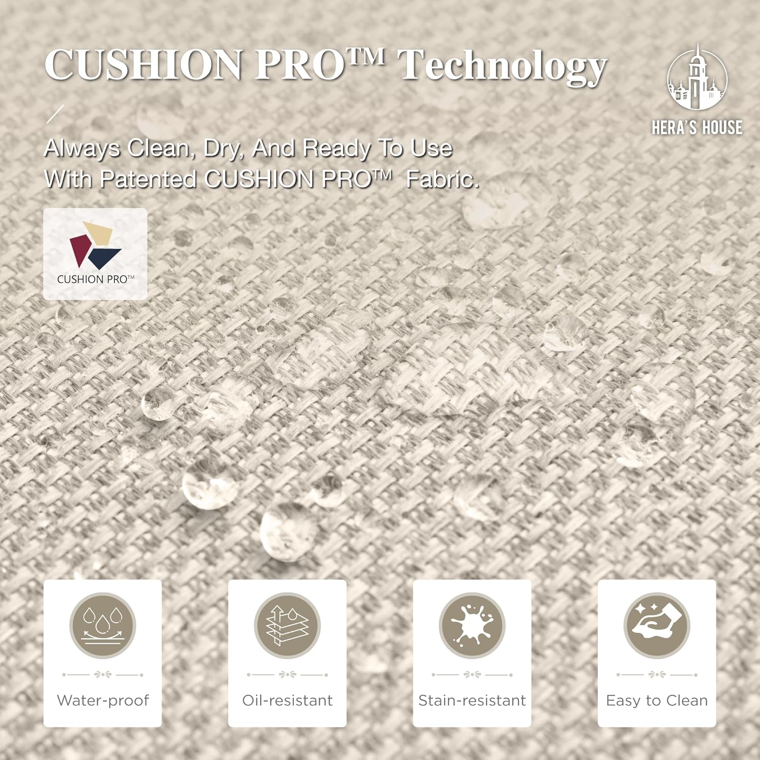 4.【ALL WEATHER USE】Special CUSHION PRO technology applied on the fabric of this table and chairs set. It makes the dirts be easily wiped down. Water-proof, oil-proof and can be easily removed with the L-shaped zipper design. Perfectly for all seasons use.