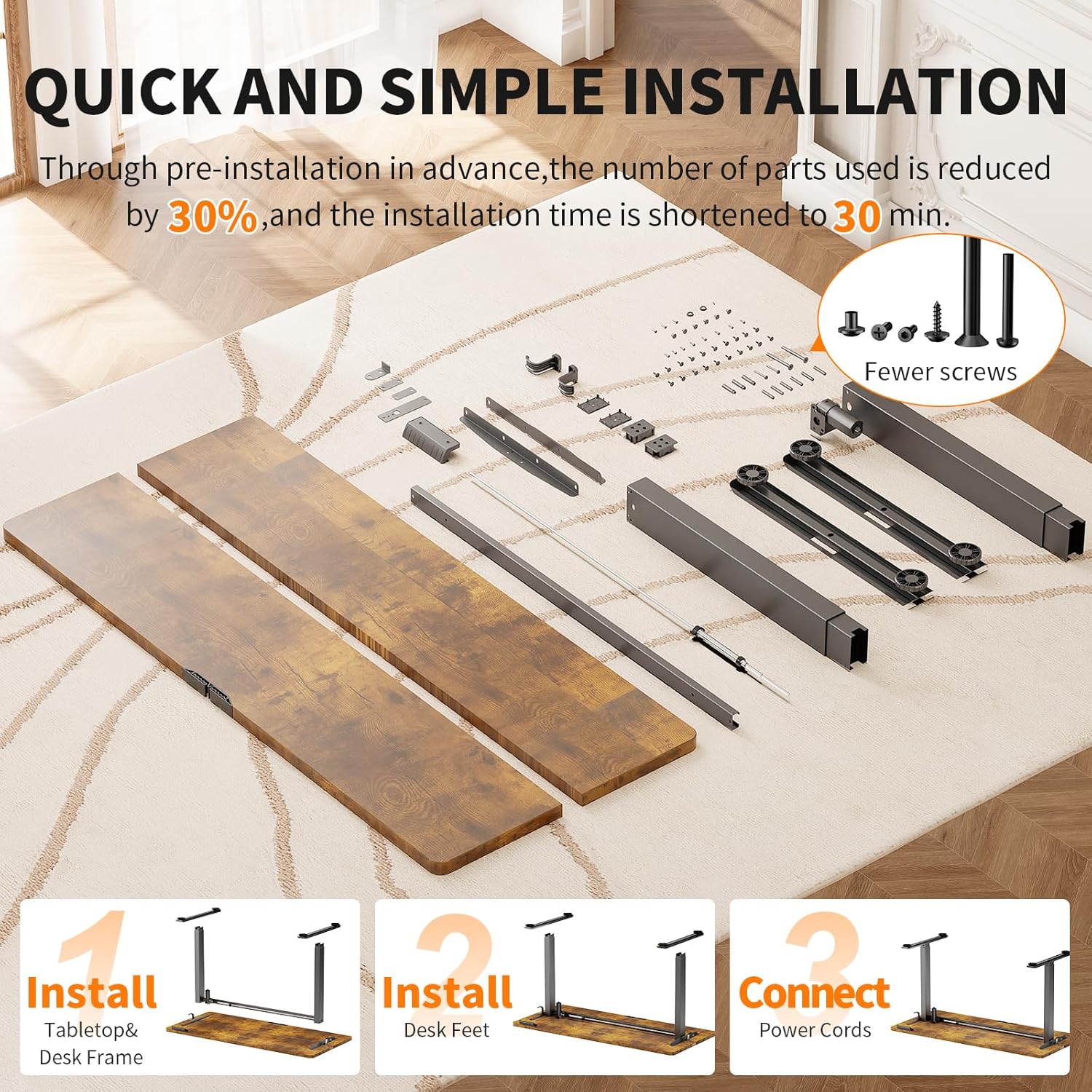 1. Elevate Your Workspace: Enjoy effortless height adjustment from 28.3" to 46.5" to seamlessly transition between sitting and standing throughout your day; Kindly Note that the desktop is divided into 2 pieces, not a whole piece