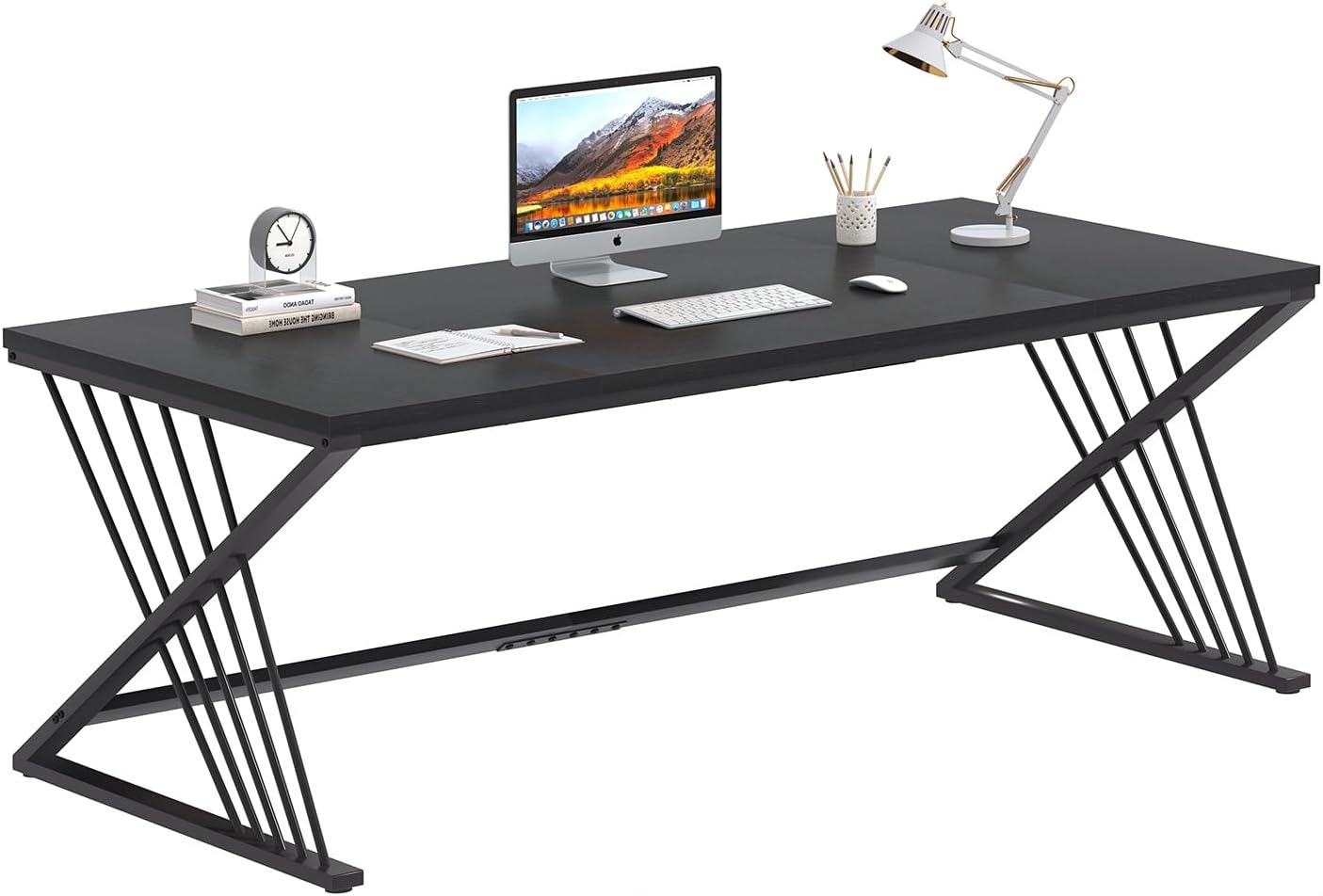 - FOLUBAN 70.9" Black Computer Desk, Modern Home Office Desk, Large Gaming Workstation Executive Desk with Z-Shaped Legs, 2 Person Large Study Writing Table for Bedroom B0FFGV35MP
