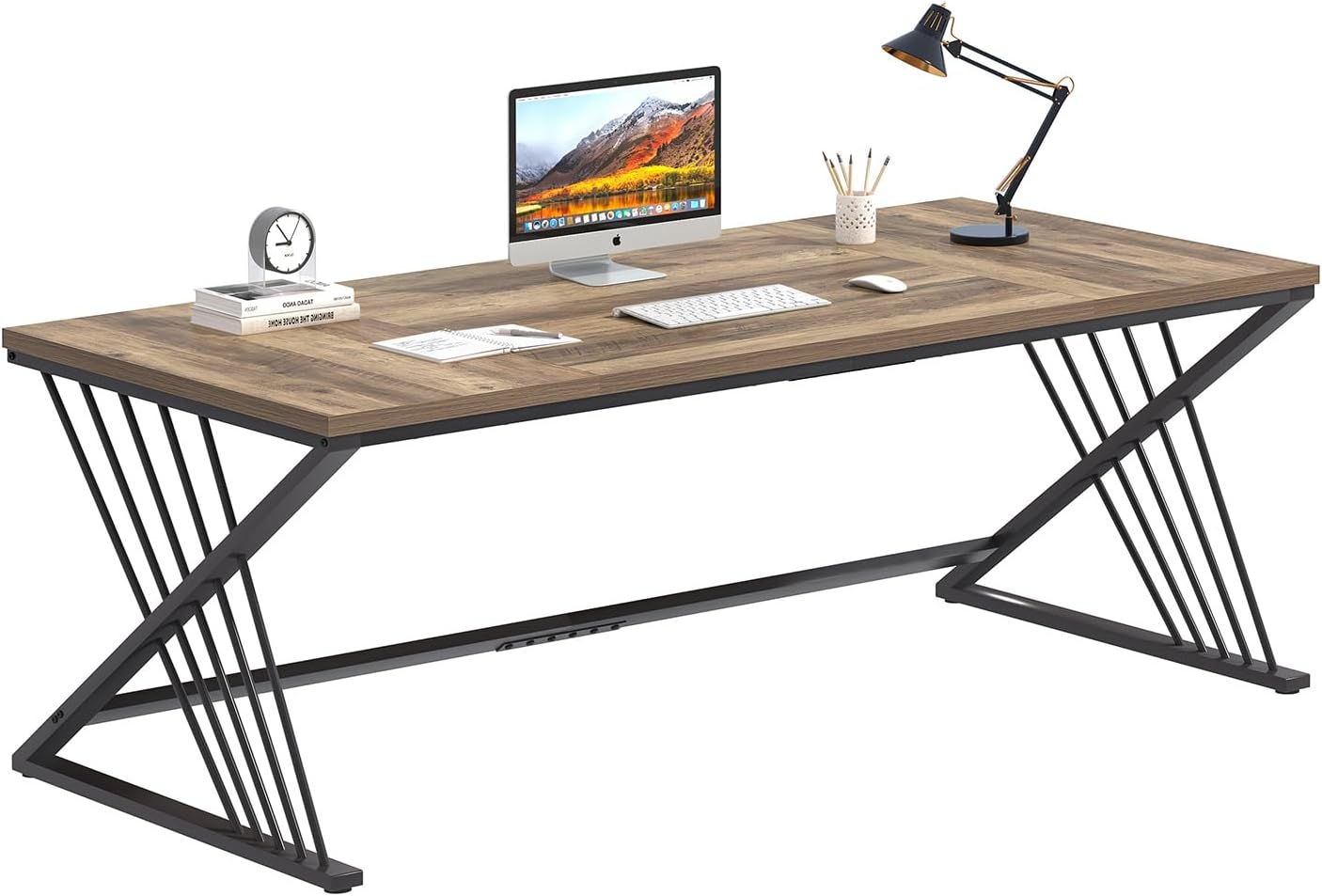 - FOLUBAN 70.9" Computer Desk with Z-Shaped Legs, Industrial Work Executive Home Office Desk, Large 2 Person Gaming Study Desk Writing Table, Oak B0FFGSSCF3