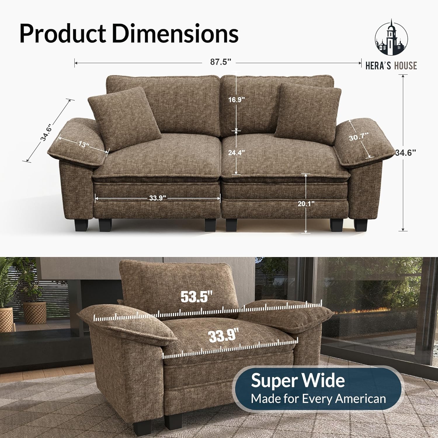 - HERA'S HOUSE 88" Modular Sectional Sofa, Loveseat Couches for Living Room, Comfy Cloud Couch 2-Seater Deep Seat Sofa with Throw Pillow, Chenille Taupe B0FBRM22NF