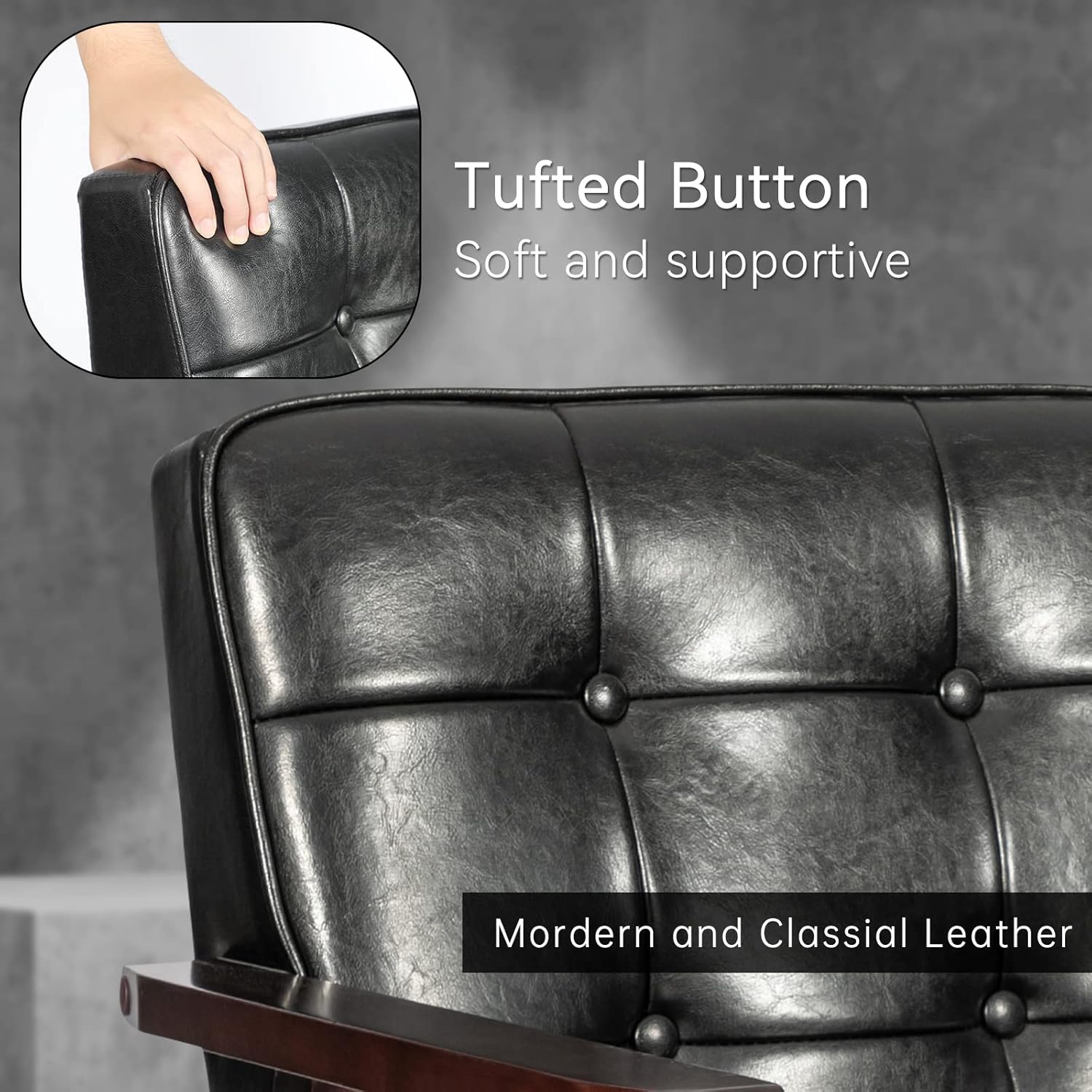 1.【Modern Retro Design】Mid-Century Retro Modern upholstered accent chair, classical leather and solid wood armrests, combined with button-tufted design, perfect addition to the living room, bedroom, waiting room, guest room.