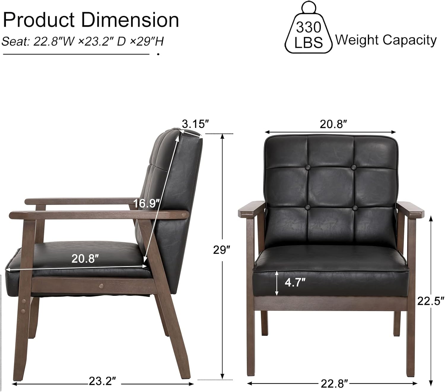 - Okeysen Accent Chairs Set of 2, Mid Century Modern Accent Chair, Retro Wood and Leather Armchairs Side Chair, Lounge Reading Comfy Arm Chair for Living Room, Bedroom, Office(Matte Black) B0BZR8WY6J