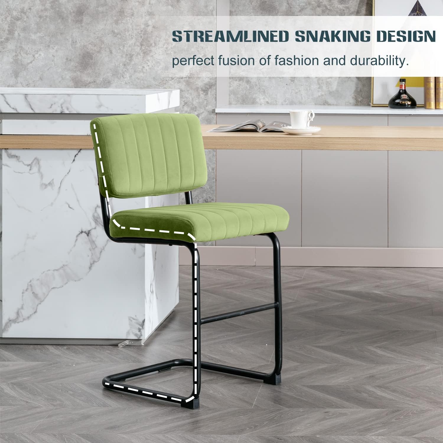3.【Rich Color for Various decor】Enjoy your free time anytime & anywhere! Sharply upholstered in velvet and available in several trendy hues, the modern style counter height bar stools works great for any décor in your room, such as dining room, balcony, living room, resting room, coffee room ,restaurant and so on.