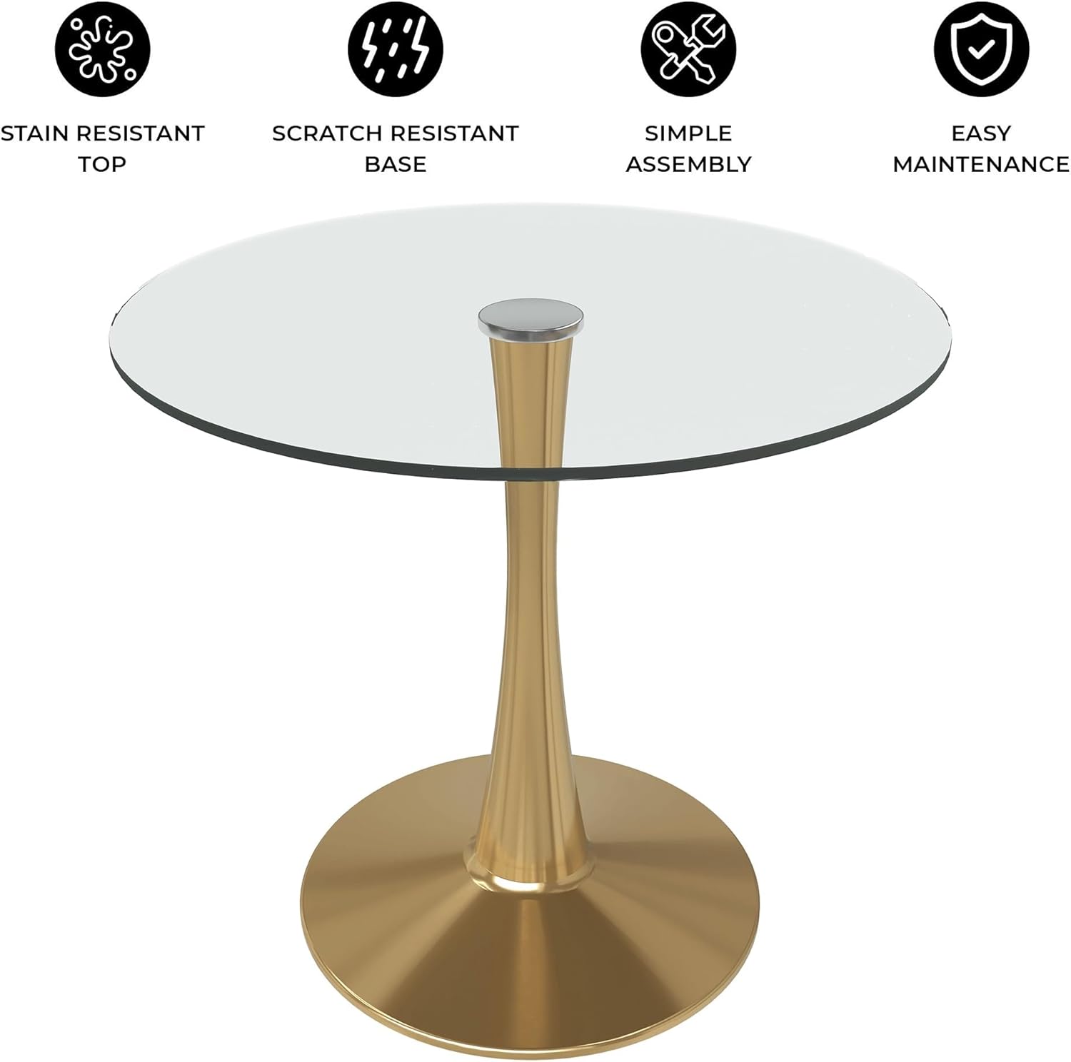 - LeisureMod Bristol 35" Round Dining Table in Clear Glass Tabletop with Gold Pedestal Base, Mid-Century Accent Table for Kitchen, Café & Dining Room B0GD8LBV2B