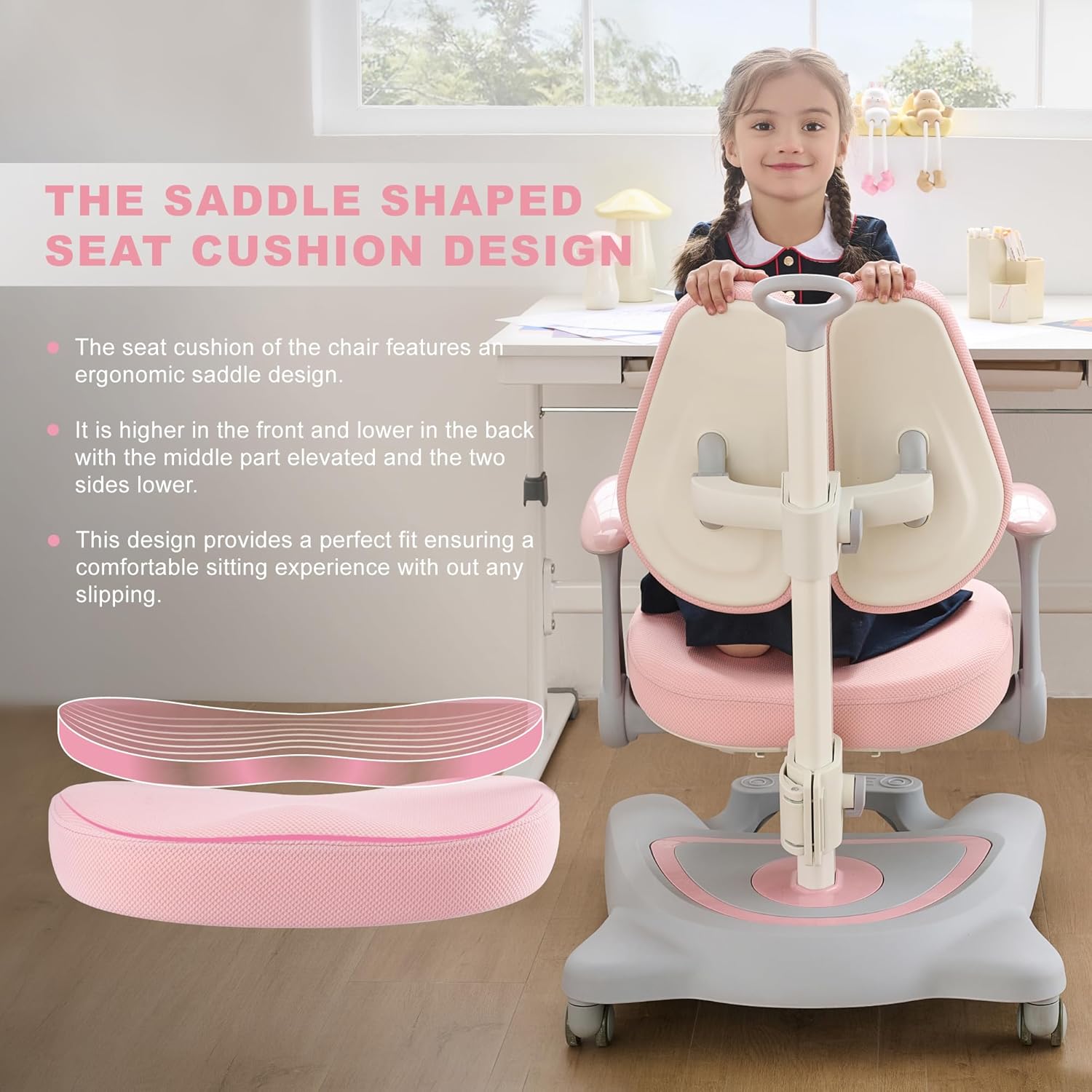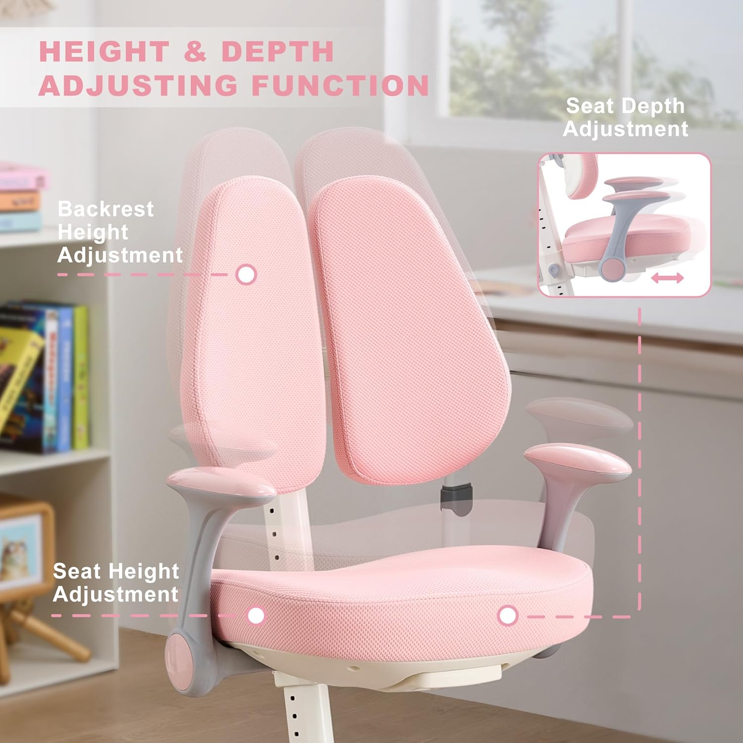 - ERIYA Kids Desk Chair,Ergonomic Chair: Height-Adjustable, Double Back Support – Multifunctional for Study/Work/Dining | Ideal for Kids, Petite Adults – Ultra-Comfy (Bedrooms, Schools, Offices)(Pink) B0F23ZYW8M