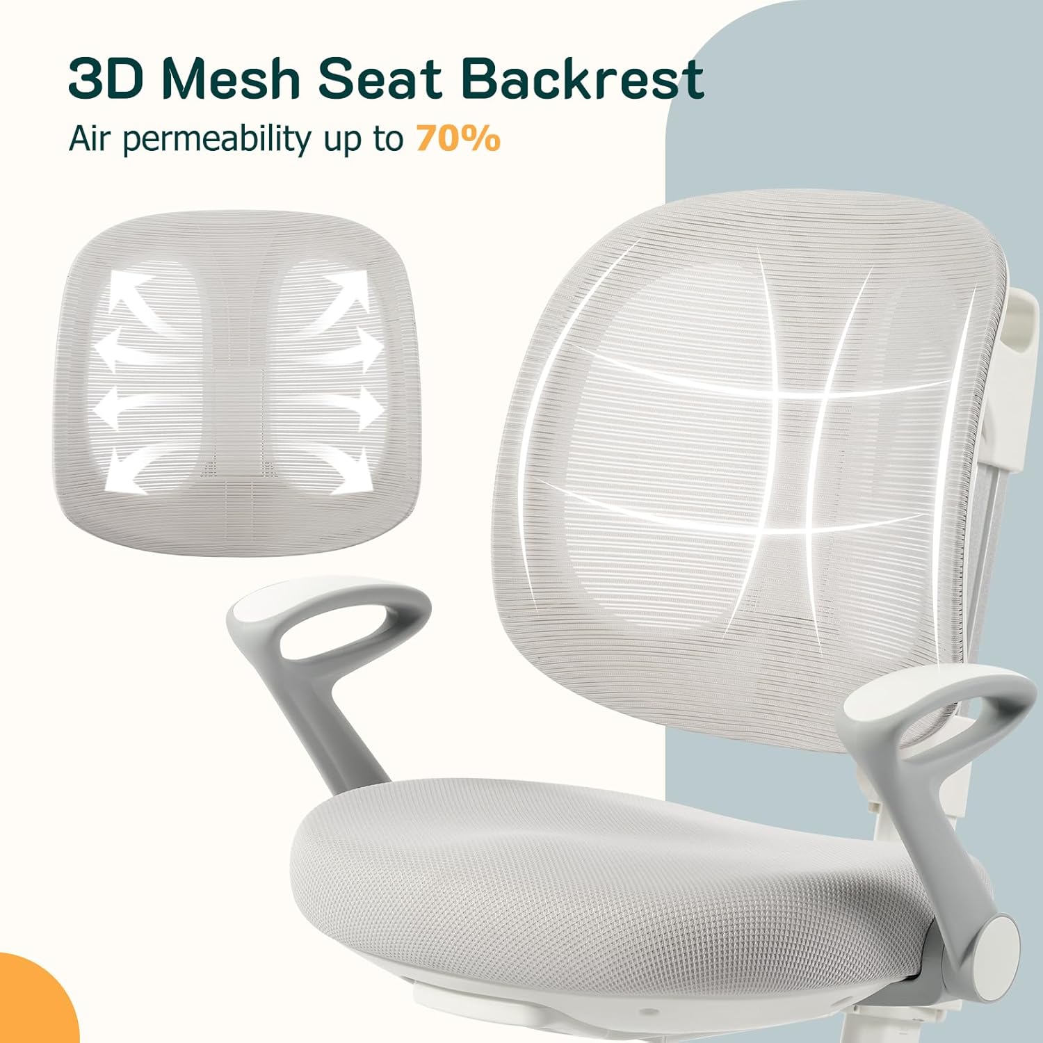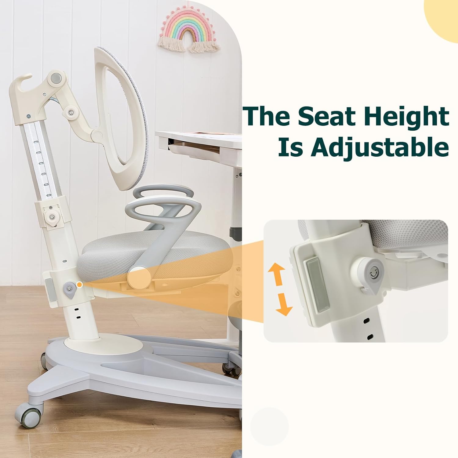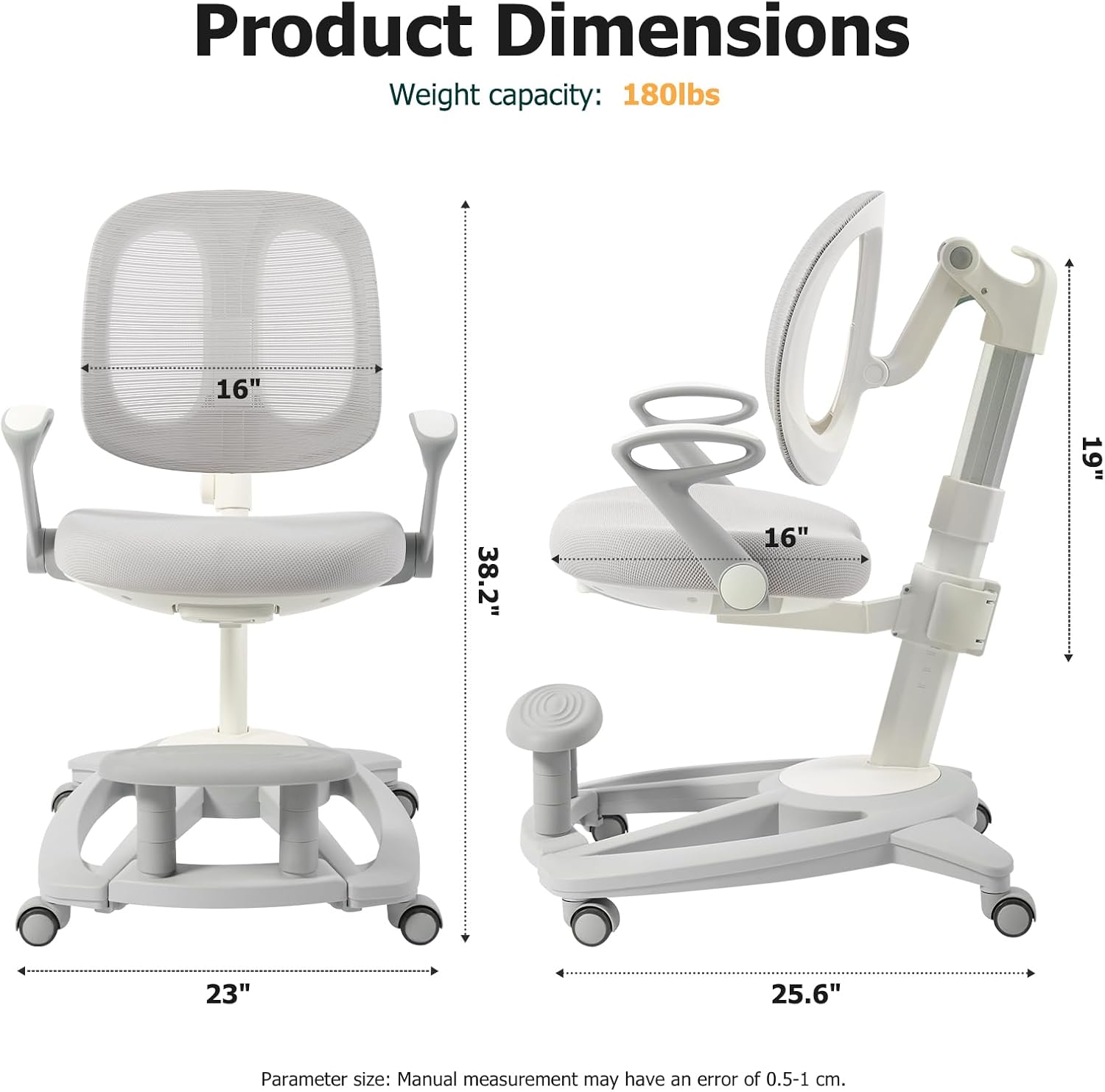 - Ergonomic Kids Desk Chair with Footrest & Height-Adjustable Seat, Multifunctional for Study, Work & Dining – Comfy Cushion & Smooth Wheels for Boys & Girls (Grey) B0F23XL9J9