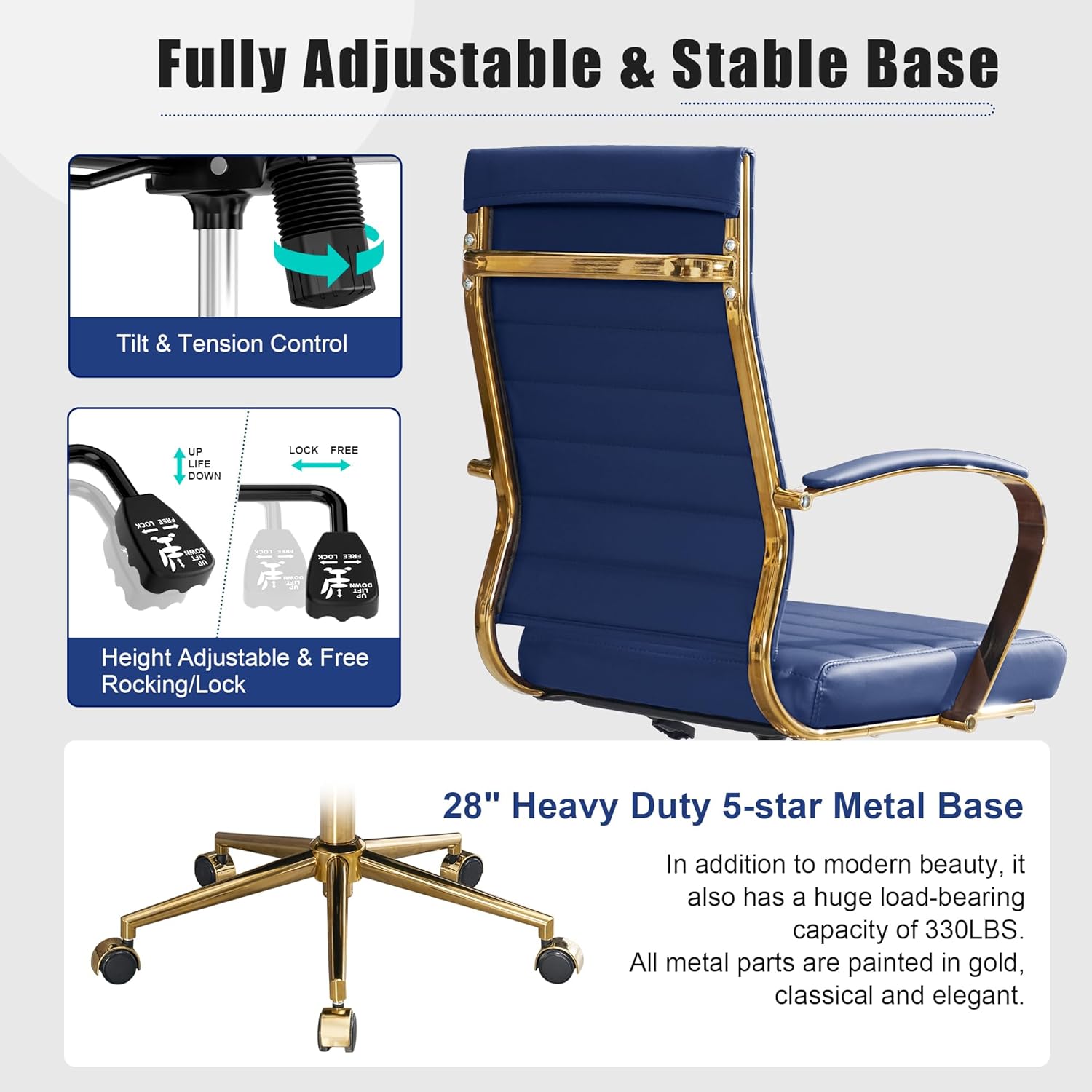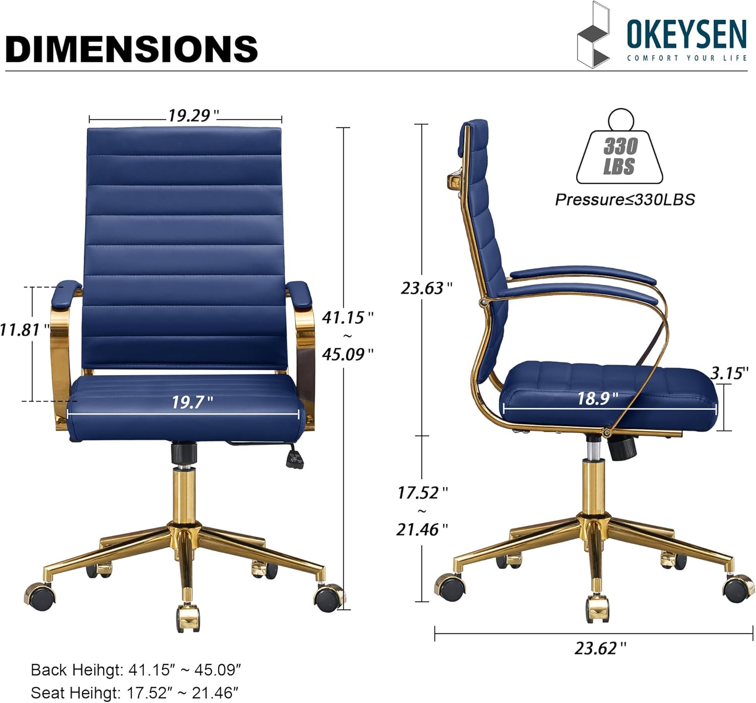 - Okeysen Gold Office Desk Chair, Ergonomic Leather Modern Conference Room Chairs, Executive Ribbed Height Adjustable Swivel Rolling Golden Chair for Home Office. B0DV4FWXQT