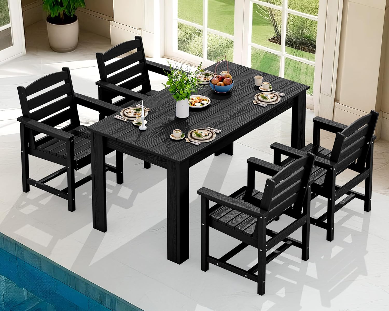 - SERWALL HDPE Dining Set for 4, Outdoor Dining Sets for 4 Person with 1 Umbrella Hole Cut-Out Rectangular Table and 4 Chairs, Patio Dining Sets Black B0FY2W1LTX