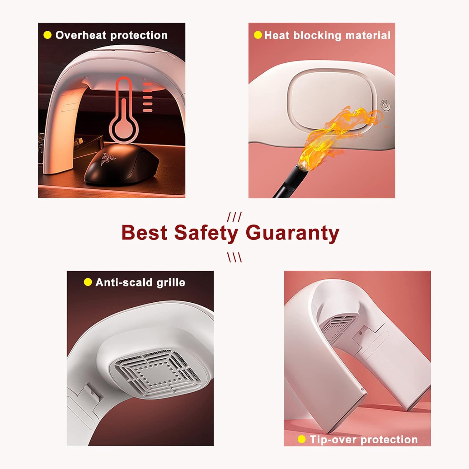 3.【Triple security protection】: 1. Tip-over protection:When the hand warmer is tipped over, the internal toppling protection setting is automatically triggered and the power supply is automatically disconnected; 2. Overheat protection: when the temperature rises above 170 degrees Fahrenheit, the power supply will also be automatically turned off; 3. Anti-scald grille: PP flame retardant material and anti-scald grille are used to improve the safety protection performance.