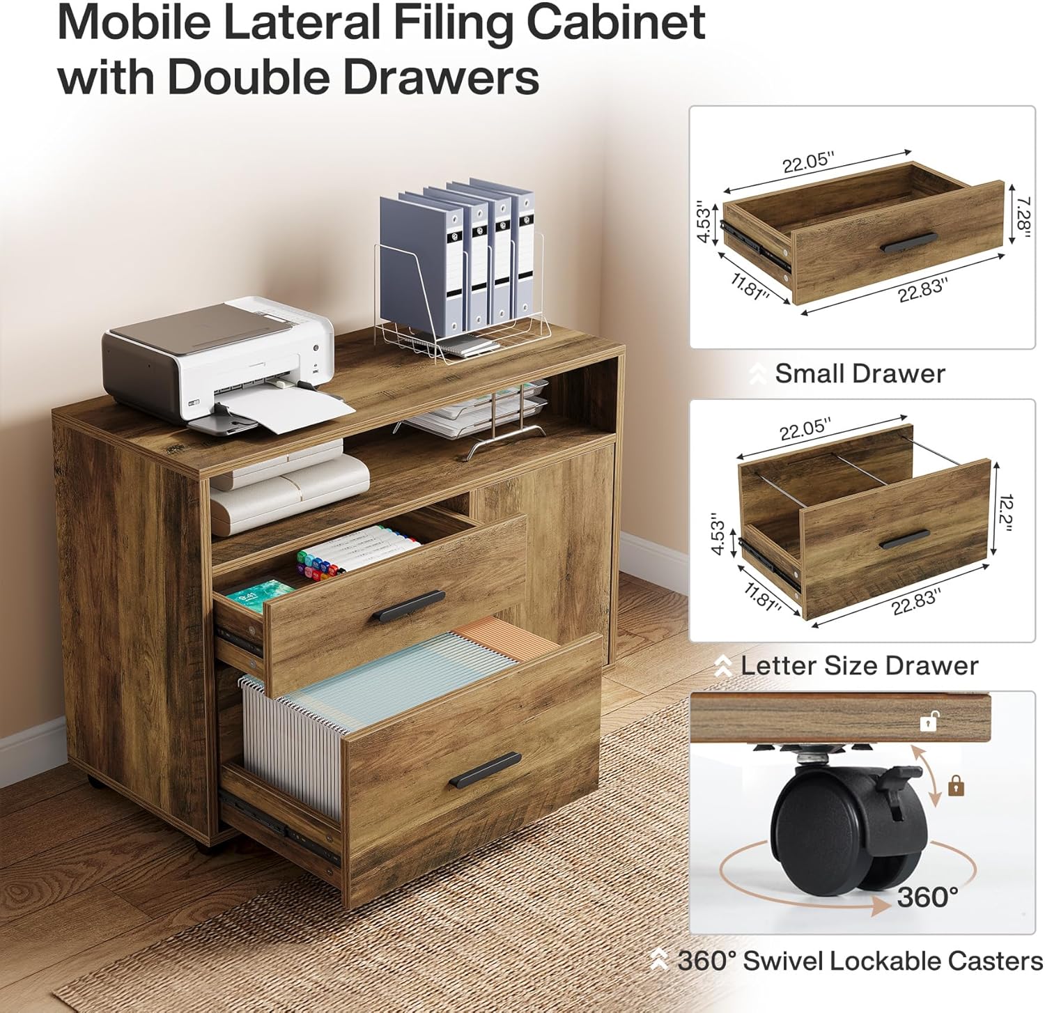 - Tribesigns L Shaped Desk with Drawer Cabinet, 63" Executive Computer Desk and lateral File Cabinet, 2 Piece Home Office Furniture with Drawers for Hanging, Door (Rustic Brown, 63 inches) B0G29VJL5Z