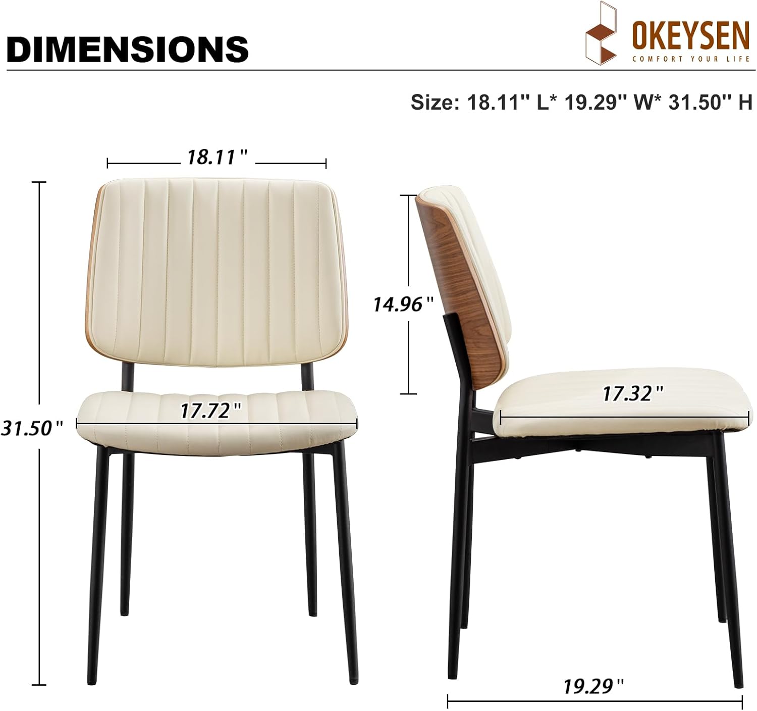 - Okeysen Leather Dining Chairs Set of 2, Mid Century Modern Dining Chairs with Bentwood Backrest and Upholster Seat,Armless Kitchen Chairs with Metal Legs Adjustable Foot for Dining Room(Beige) B0CTMPGWY4