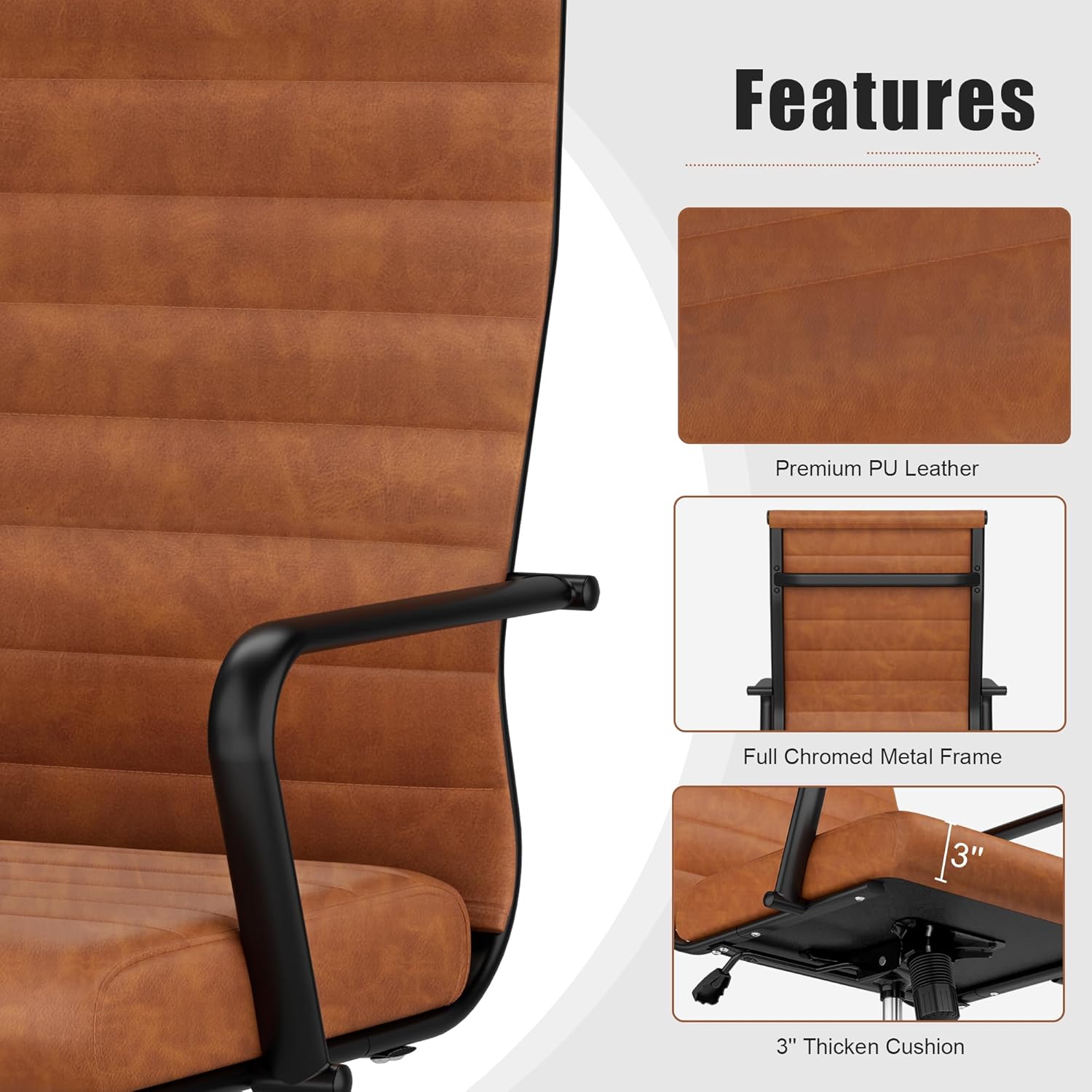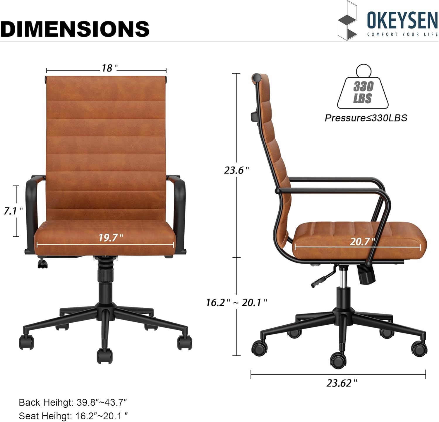 - Okeysen Leather Office Desk Chair, Mid-Century Modern Leather Conference Room Chairs, Ergonomic Executive Ribbed Height Adjustable Swivel Rolling Chair for Home Office. B0C58TB3R5