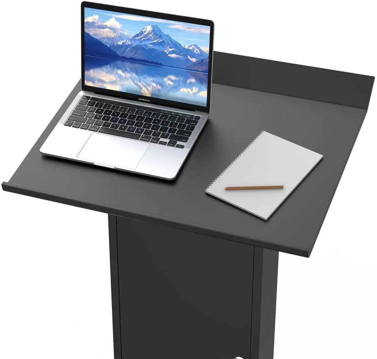 3. 【LARGE WORK SURFACE 】– Spacious tabletop accommodates laptop, presentation notes, attendance roster, and laser pointer tray simultaneously; raised edge design prevents slipping for added security.