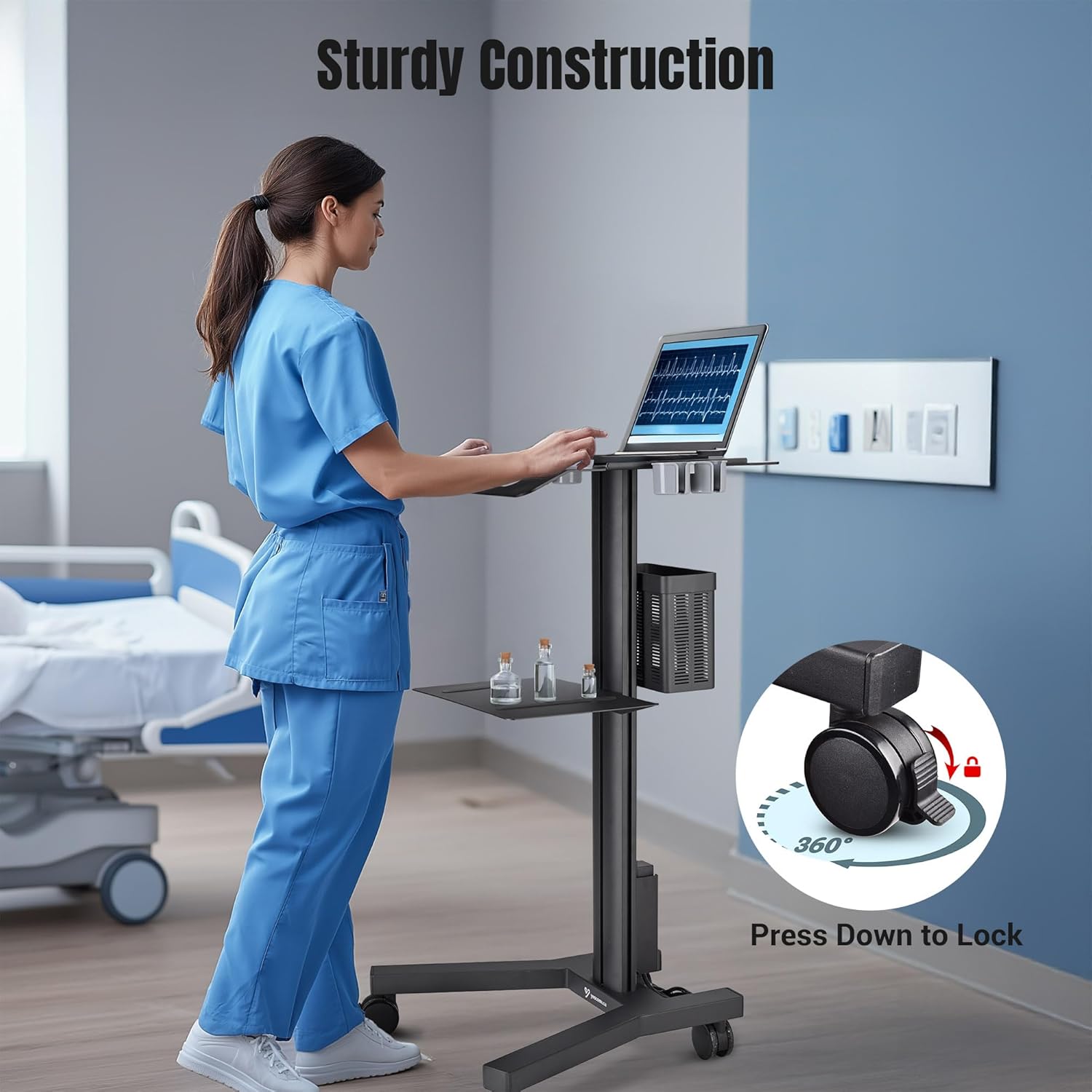 - AW Mobile Laptop Cart Medical Rolling PC Stand Computer Workstation on Wheels with Handle 220 Lbs Capacity CPU Printer Power Strip Holder for Lap School Office Salon Spa Dental B0F3J3QMTF