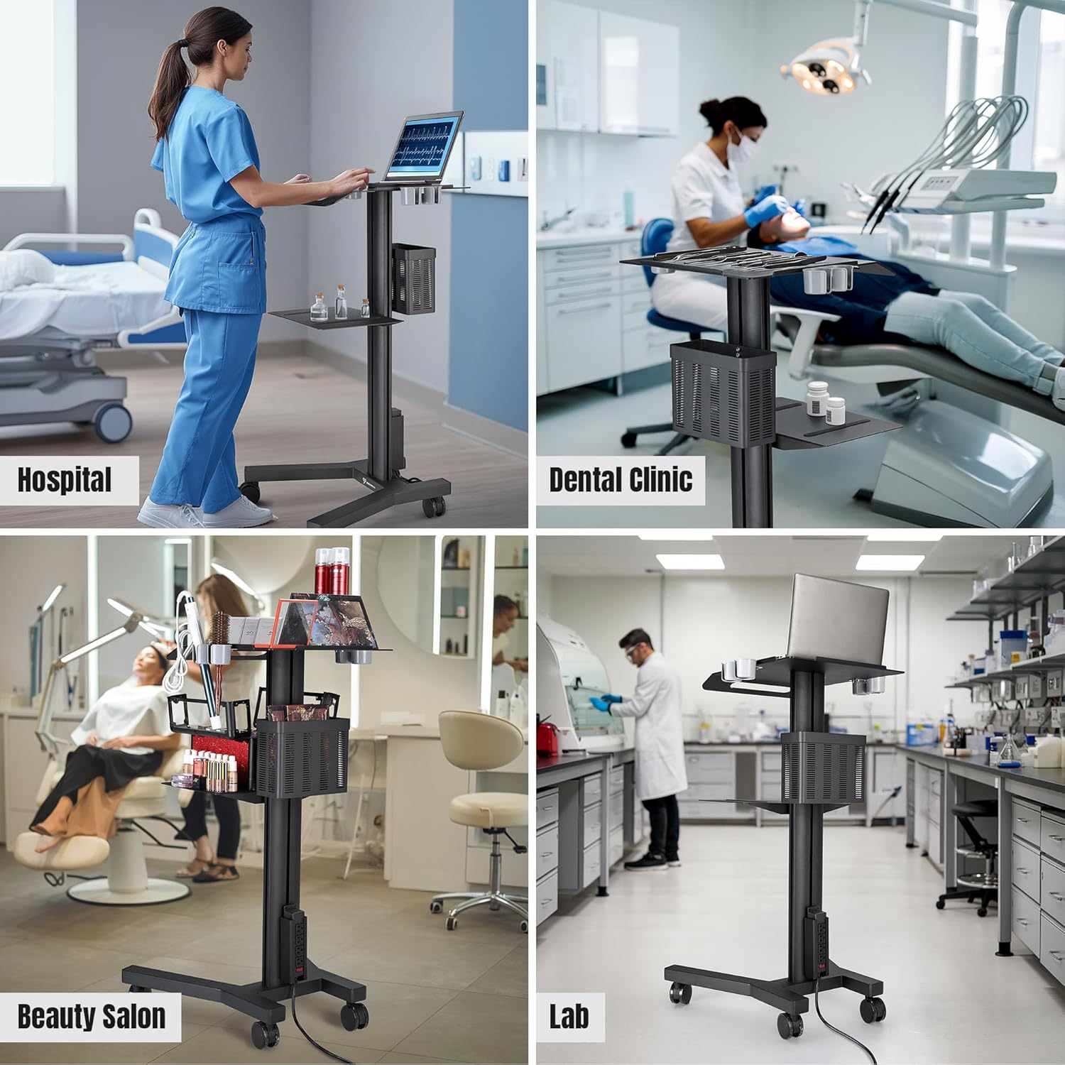 - Multi-functional & Integrated Mobile Medical Cart- Come with 2 trays, 1 basket, and 2 scanner holders, along with a 3-outlet power strip for helping you tackle multiple tasks at the same time, suitable for hospitals, dental clinics, laboratories, beauty salons, SPAs, and more