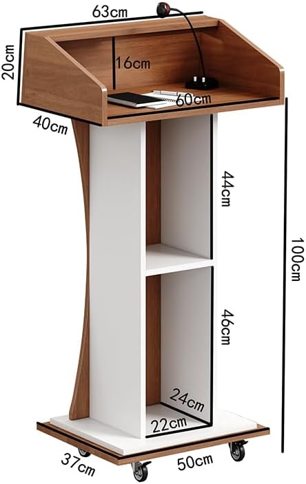 - Mobile Wooden Podium Stand with Lockable Wheels Modern Presentation Blockboard Lectern Black Walnut Color with Storage Shelves for Office, Church, Classroom, Conference Room B0DYZZ2F9K