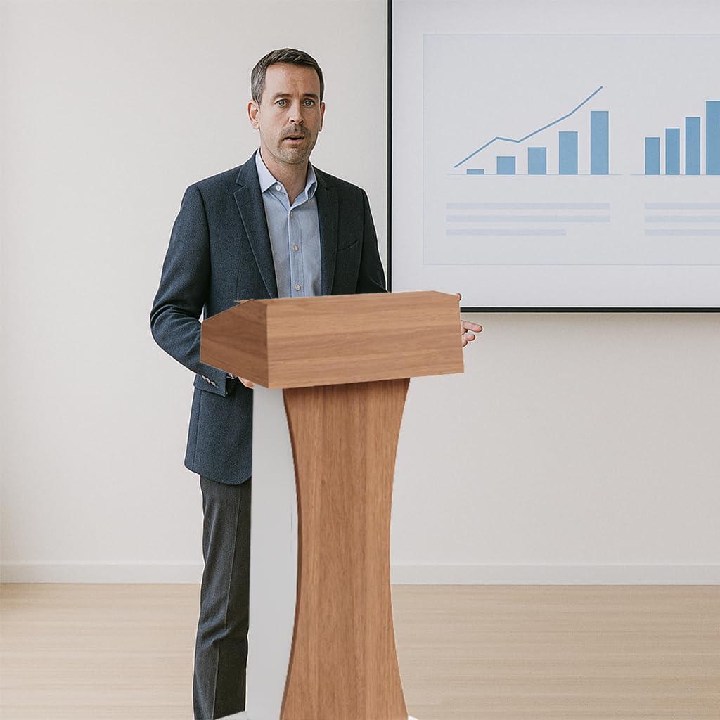 4. Modern and Versatile Design: The stylish wood and white two-tone color scheme blends effortlessly into offices, classrooms, conference rooms, churches, and other speaking venues.