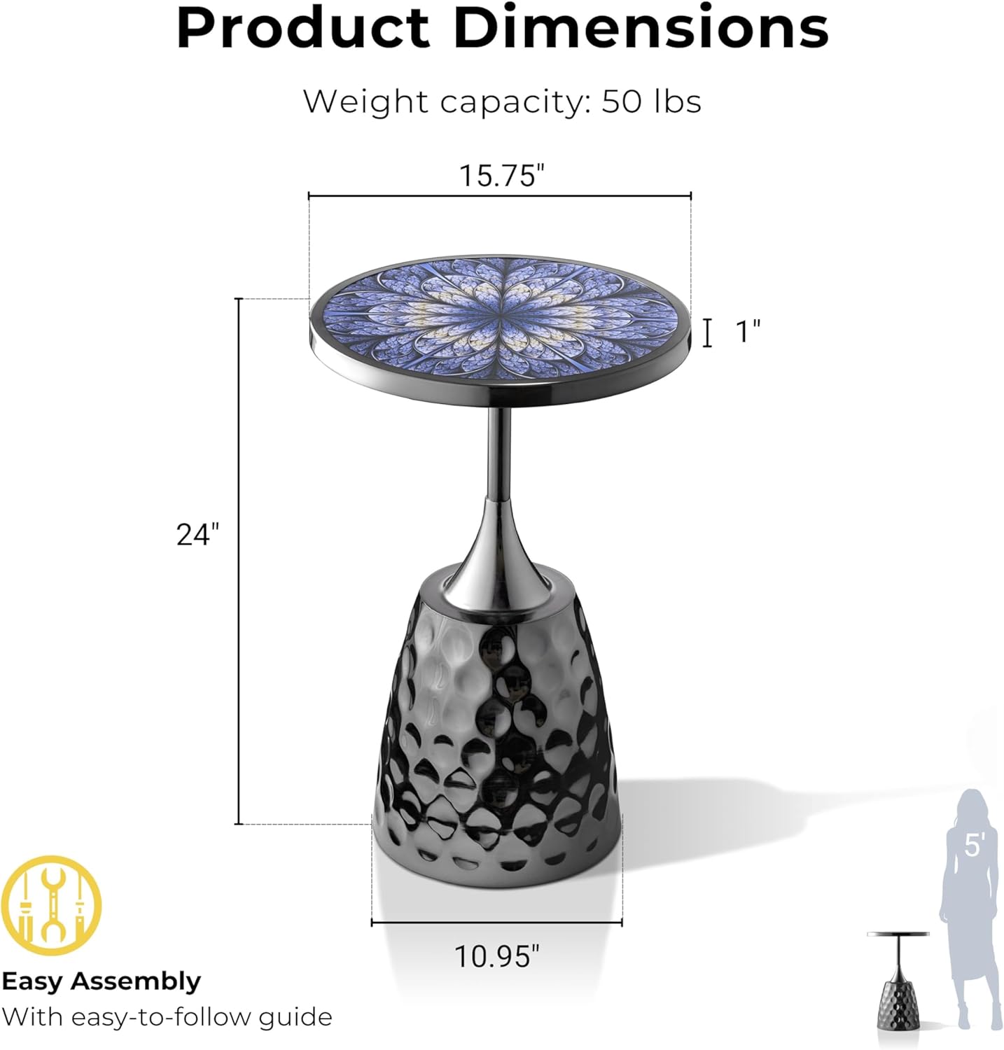 - Homes: Inside + Out Halric Modern 24" Tall Round End Table with Printed Tabletop and Iron Metal Base, Accent Furniture, Pedestal Stand for Living Room, Home Office, Black with Geometric Floral B0FD9F163G