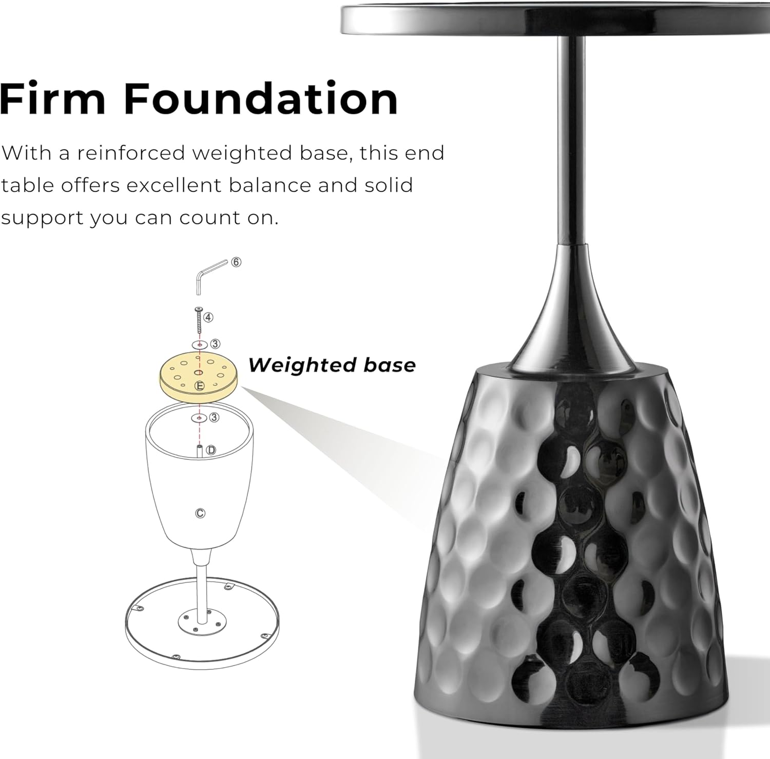 3. STRONG WEIGHTED BASE: Weighted base ensures stability and durability, ideal as a decorative circular table for living rooms, lounges, or bedrooms.