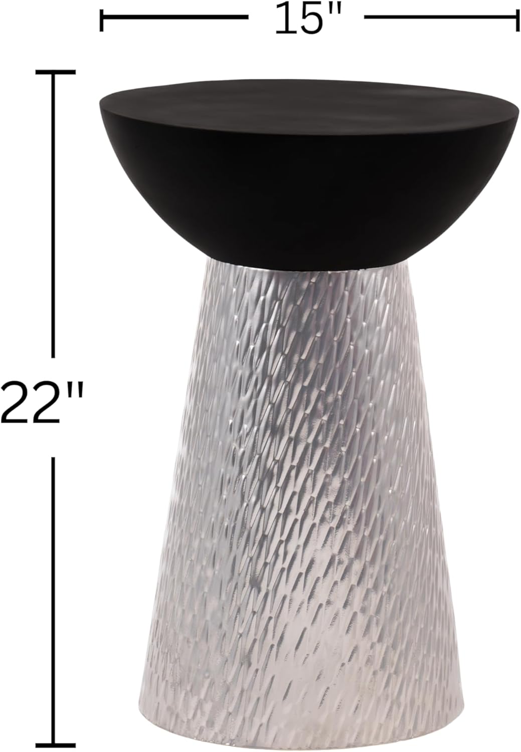 - Modern Accent Hourglass Design Side Table with Silver Hammered Metal Base and Matte Black Wooden Bowl Top – Decorative Round Pedestial End Table for Living Room, Bedroom, or Entryway,Assembled B0F6WSQNL1
