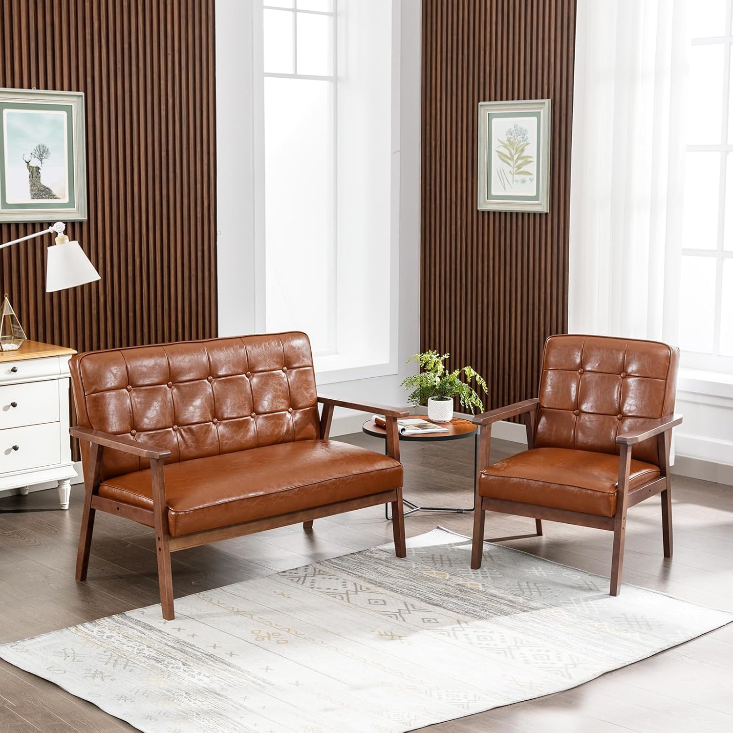 - Okeysen Modern Loveseat Sofa Set,Upholstered Leather Couch Love Seats 2-Seat & Accent Chair,Living Room Furniture Sets,Small Couches for Small Spaces Living Room,Apartment,Office(Brown) B0C7TFFM1K