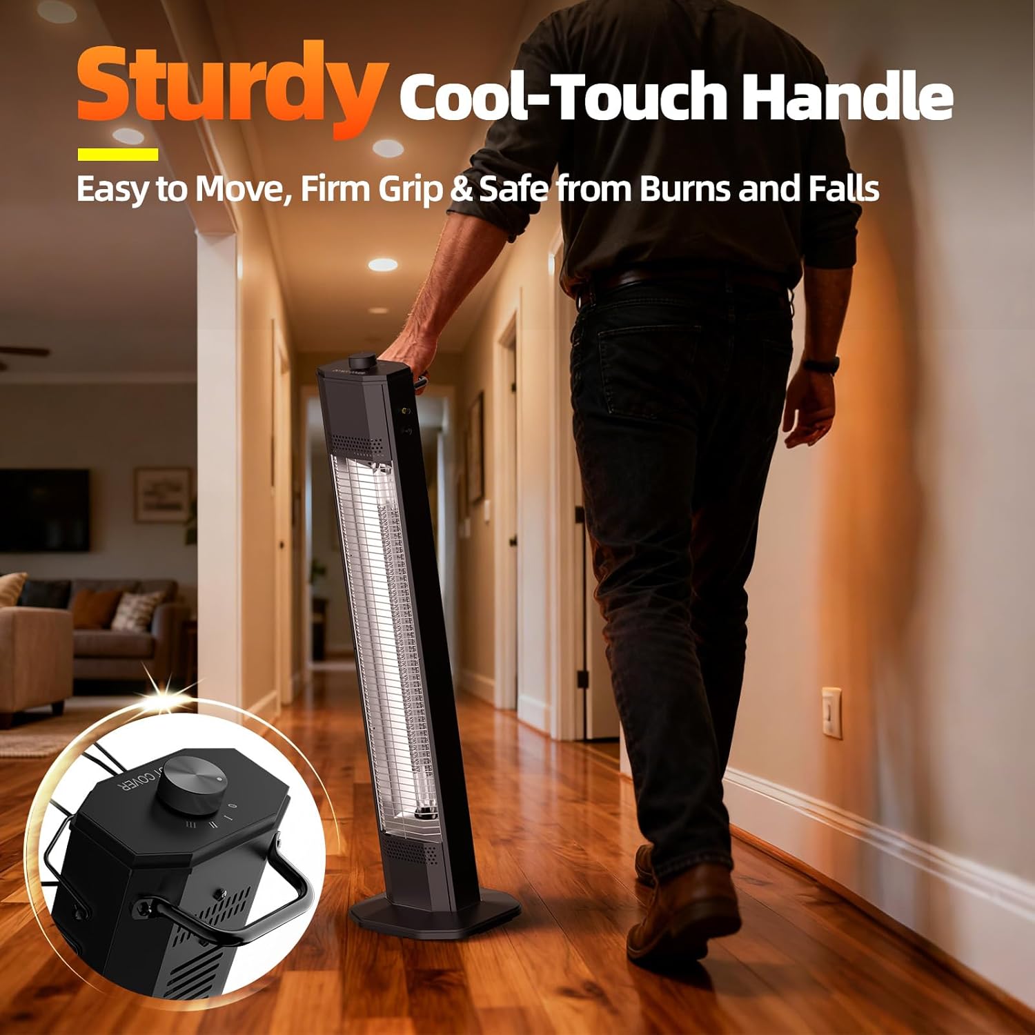 1. Instant Sun-Like Warmth – Experience fast, comforting heat in just 1 second. This 34-inch 1500W infrared patio heater uses dual carbon heating elements to deliver gentle, sun-like warmth without drying the air or making noise—ideal for patios, garages, and living areas.