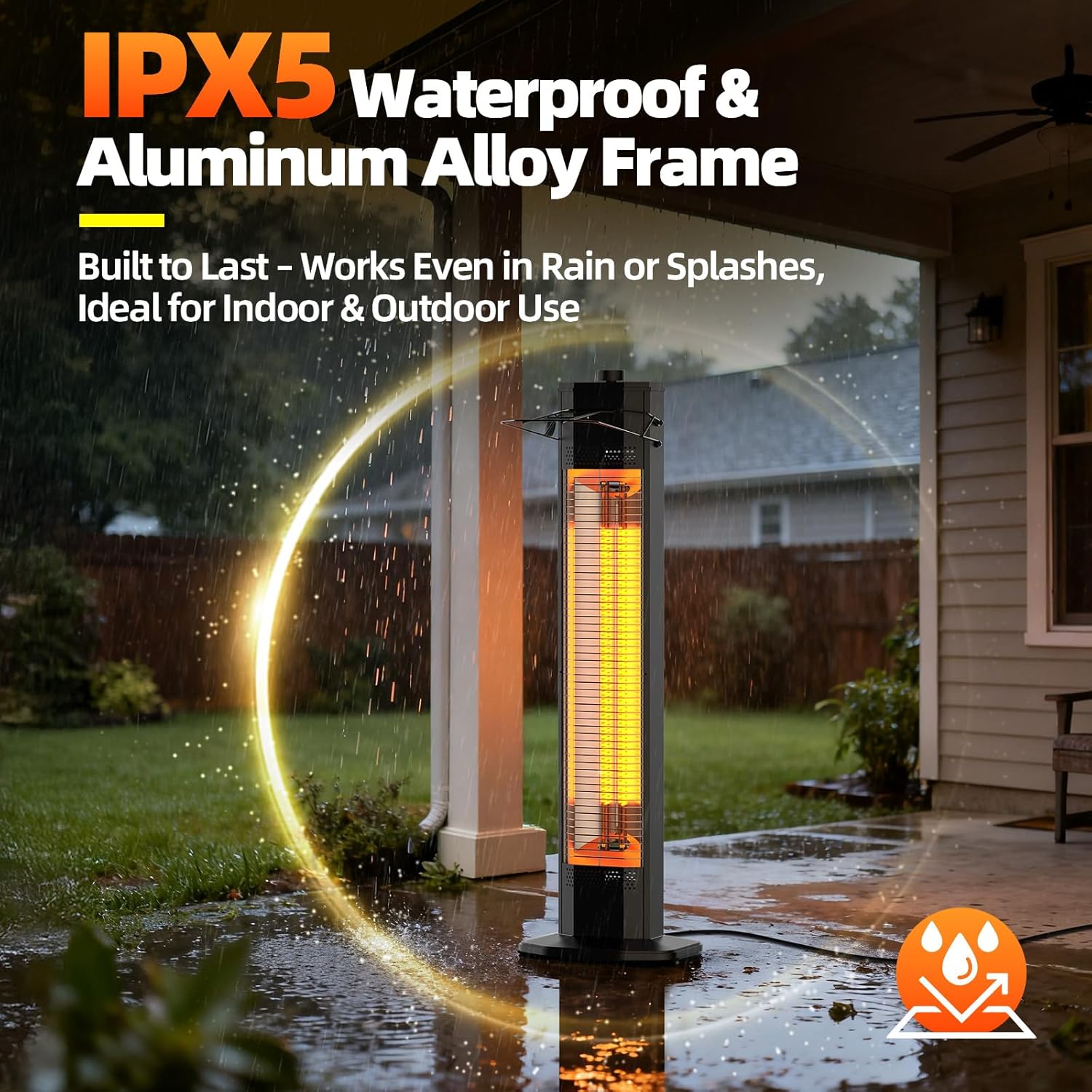 3. Durable & Weather-Resistant – Built with a rust-resistant aluminum alloy frame and IPX5 waterproof protection, this outdoor electric heater performs reliably in rain, humidity, or dusty environments—perfect for year-round indoor or outdoor use.