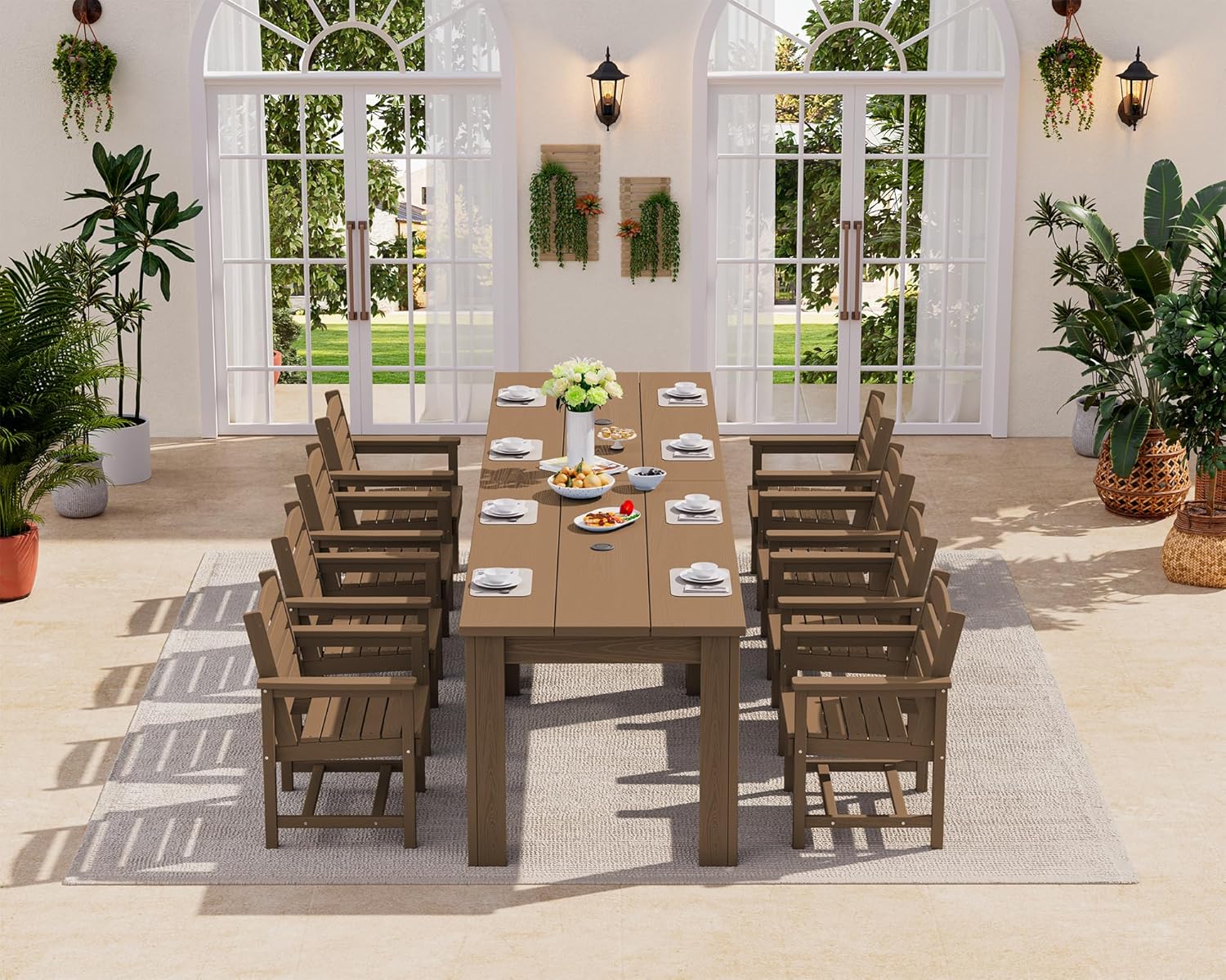 - SERWALL Patio Dining Sets for 8, Outdoor Dining Sets for 8 Person with 2 Umbrella Hole Cut-Out Rectangular Tables and 8 Chairs, HDPE Dining Sets for Garden, Backyard, Poolside, Brown B0FY2YWWG5