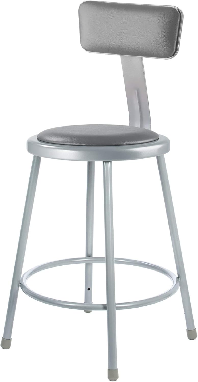 - OEF Furnishings OEF6424B/2 Premium Commercial-Grade All-Purpose Round Stool with Backrest (24-inch Height, Gray Frame, Vinyl Padded Seat, 2-Pack) B084SQF7YY