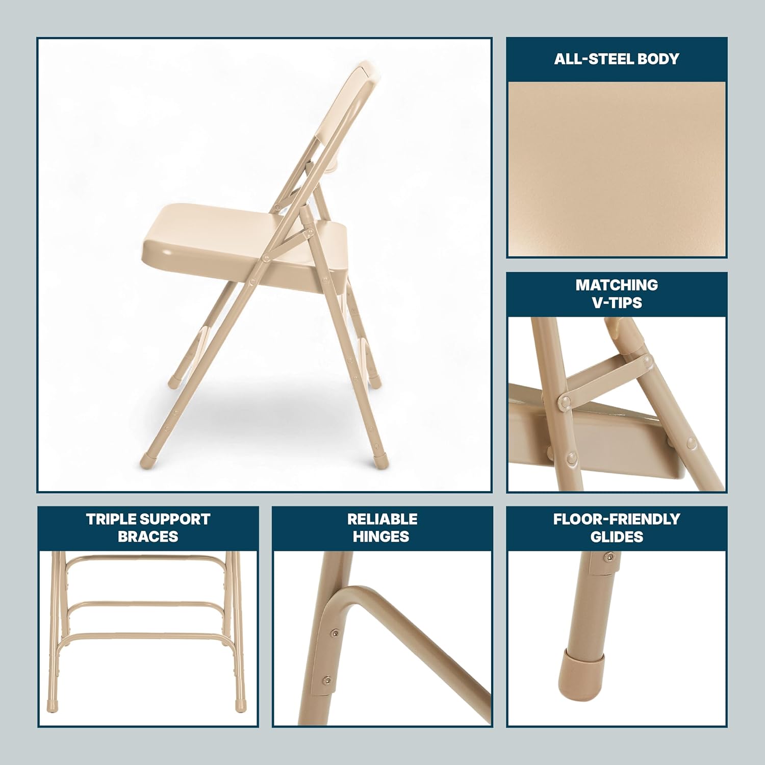 - OEF Furnishings OEF300 Series Premium Heavy-Duty All-Steel Folding Chairs, Triple-Braced Commercial Metal Chairs with Double Hinges, 500 lb Capacity (4-Pack, Beige) B08VDZYKF4