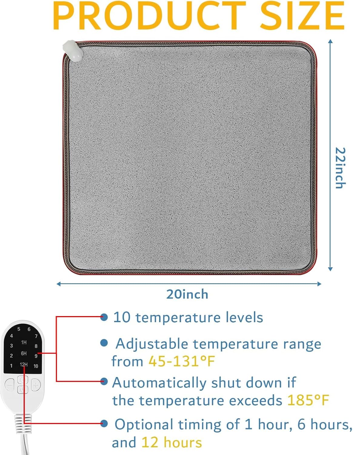 - QOUBAI PVC 110V Heated Floor Mat Heater for Foot Warmer Under Desk 22 x 20 Inch Electric Heating Pad Energy Saving Carpet Pad Indoor Floor Heated Rug for Home Office Bathroom House Gray B0DJSBRCFR