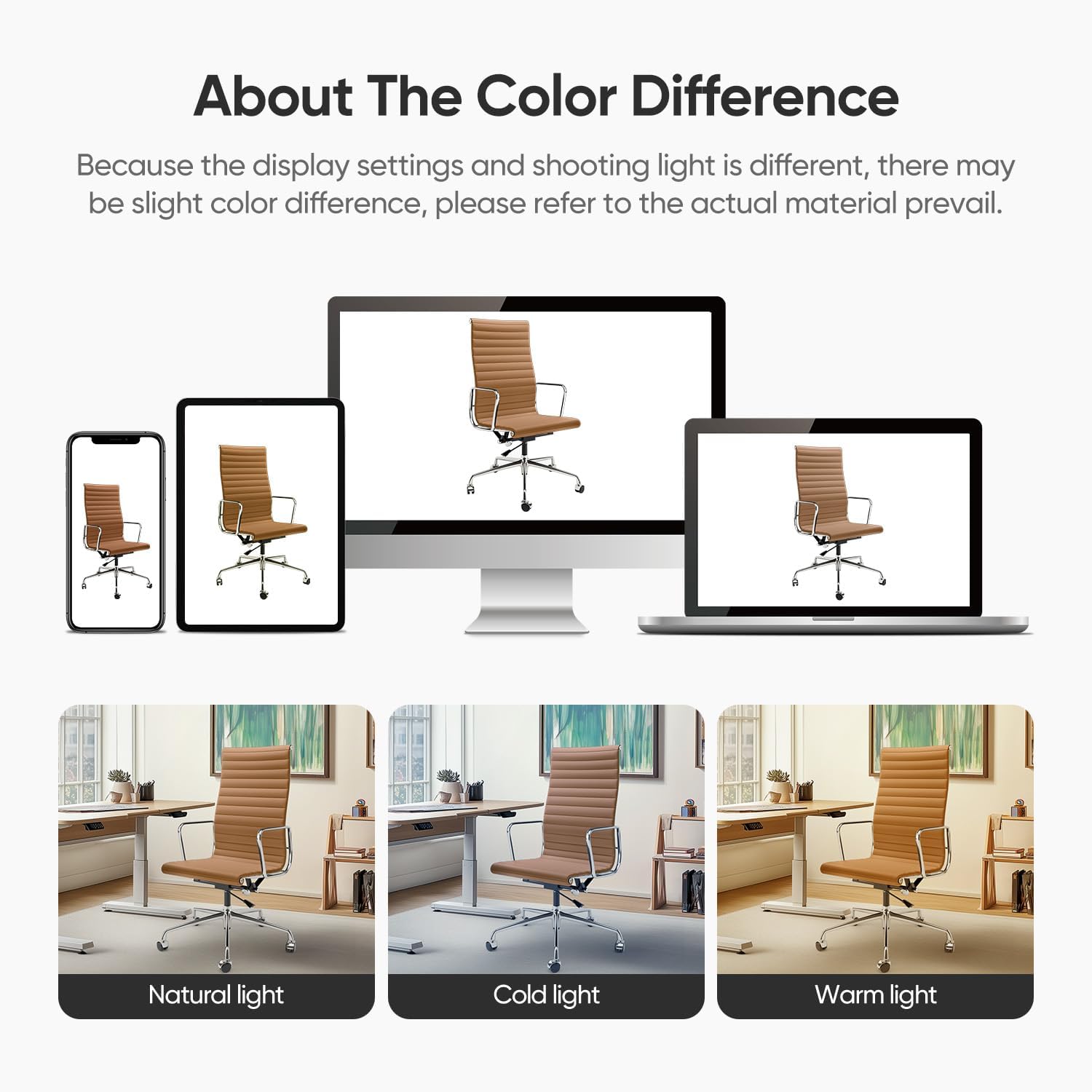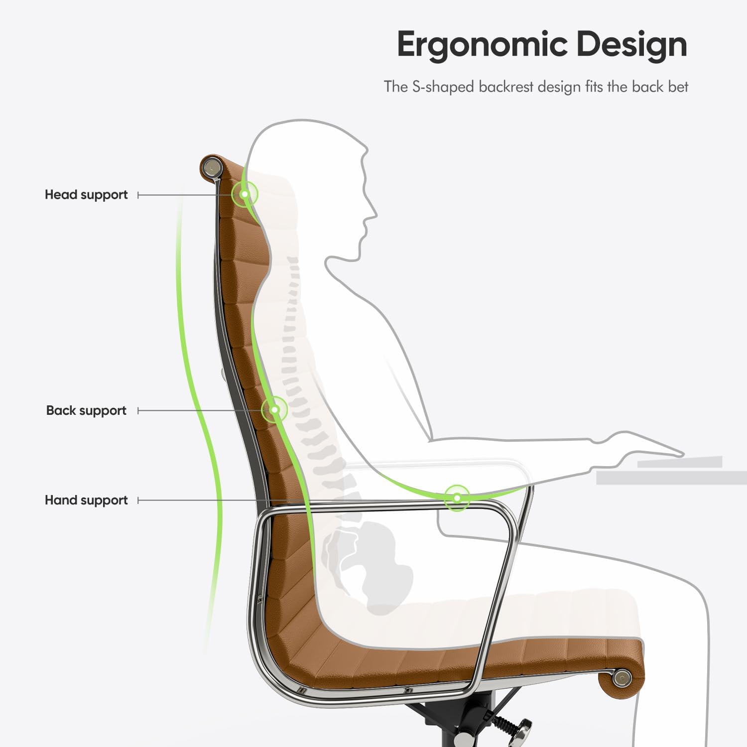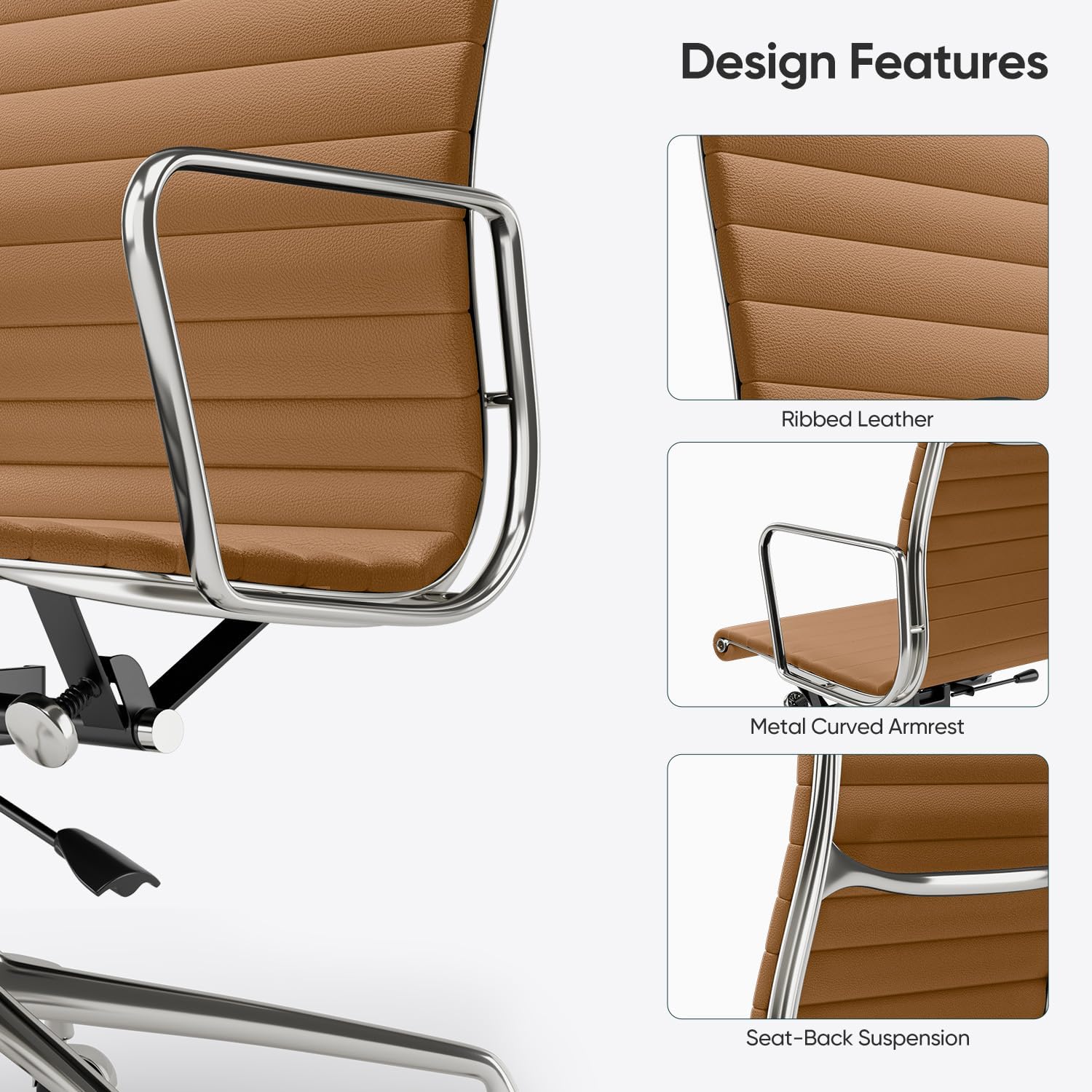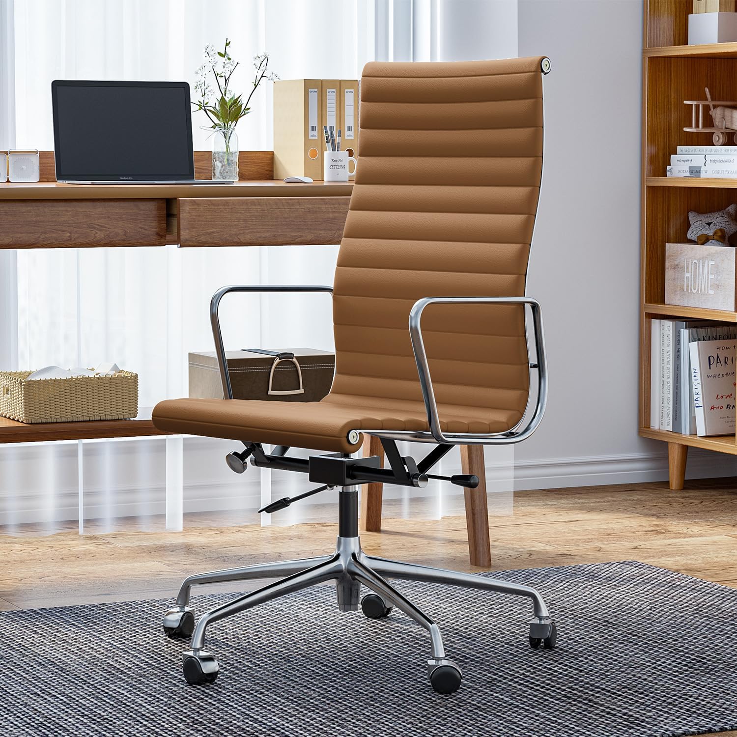 - OTDMEL Ribbed Office Chair with Top Grain Leather - High Back Ergonomic Desk Chair with Aluminum Arm Rest and 5-Star Base, Swivel Chairs Light Brown B0FLPNBL4P