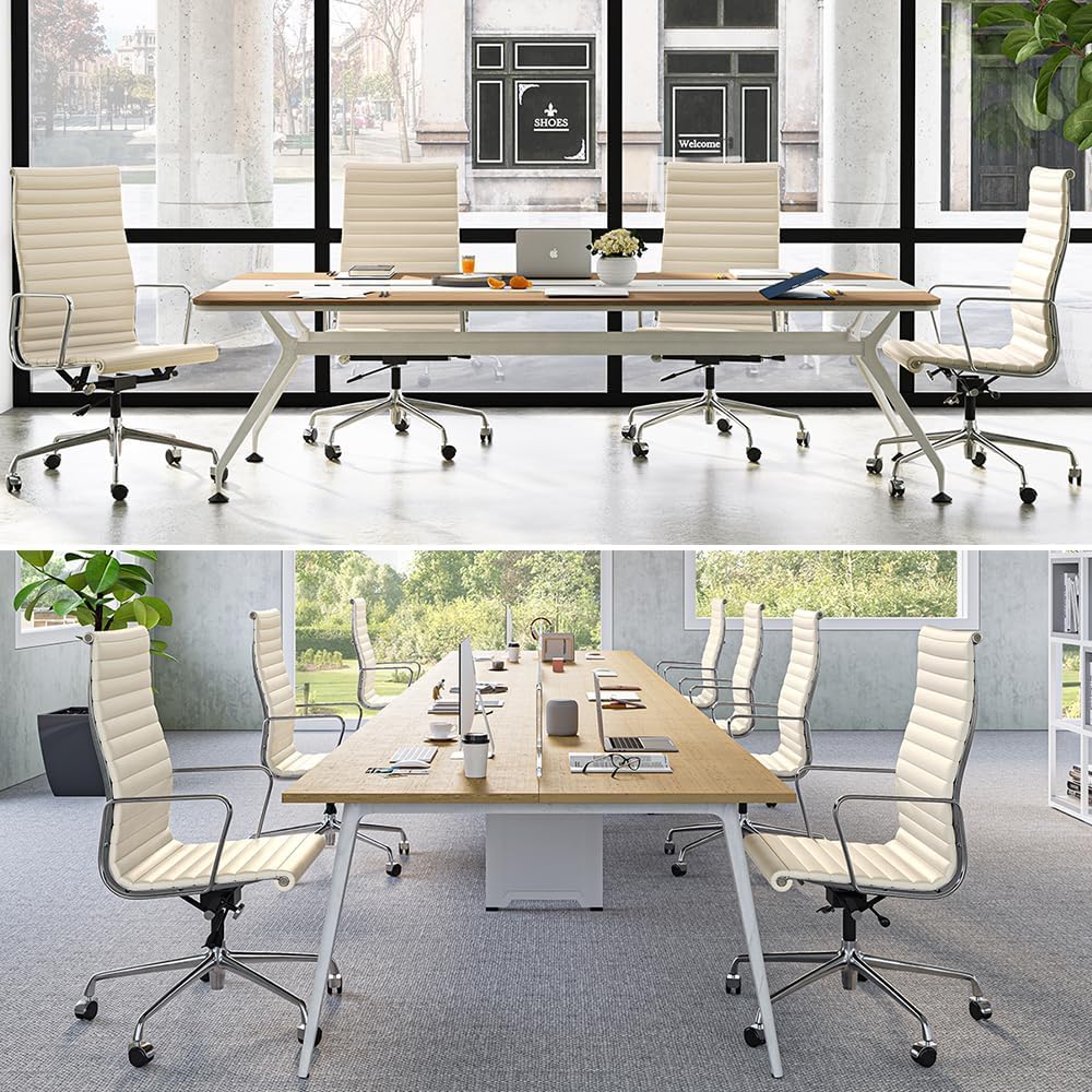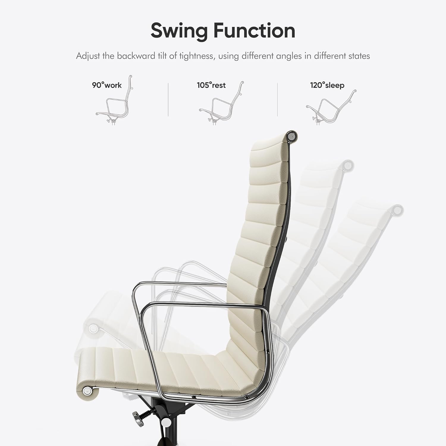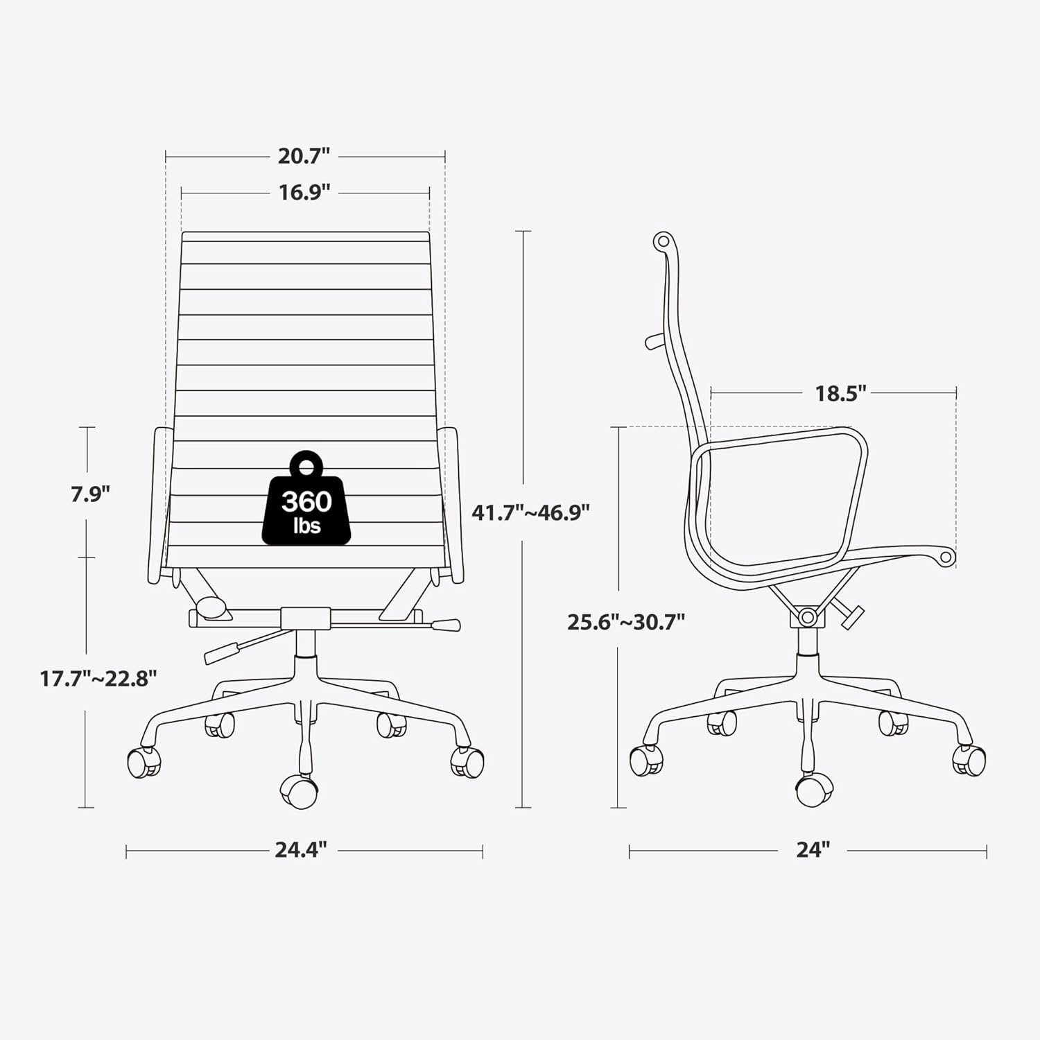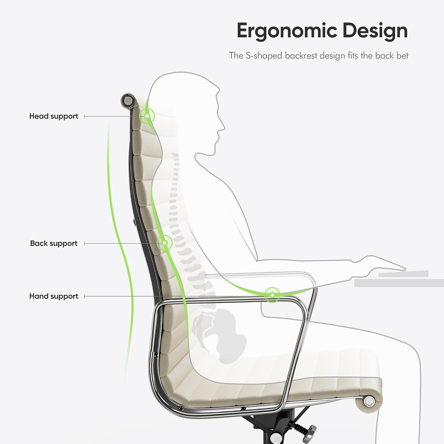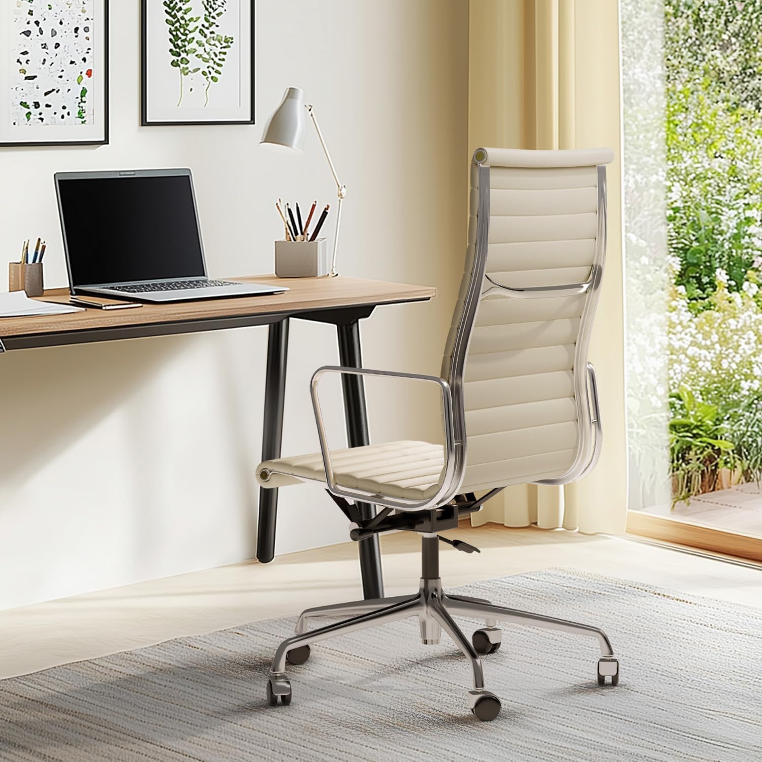 - Ribbed Office Chair with Top Grain Leather - High Back Ergonomic Desk Chair with Aluminum Arms & Frame, Swivel Wheels & Tilt Function, Adjustable Height B0FY2H272N