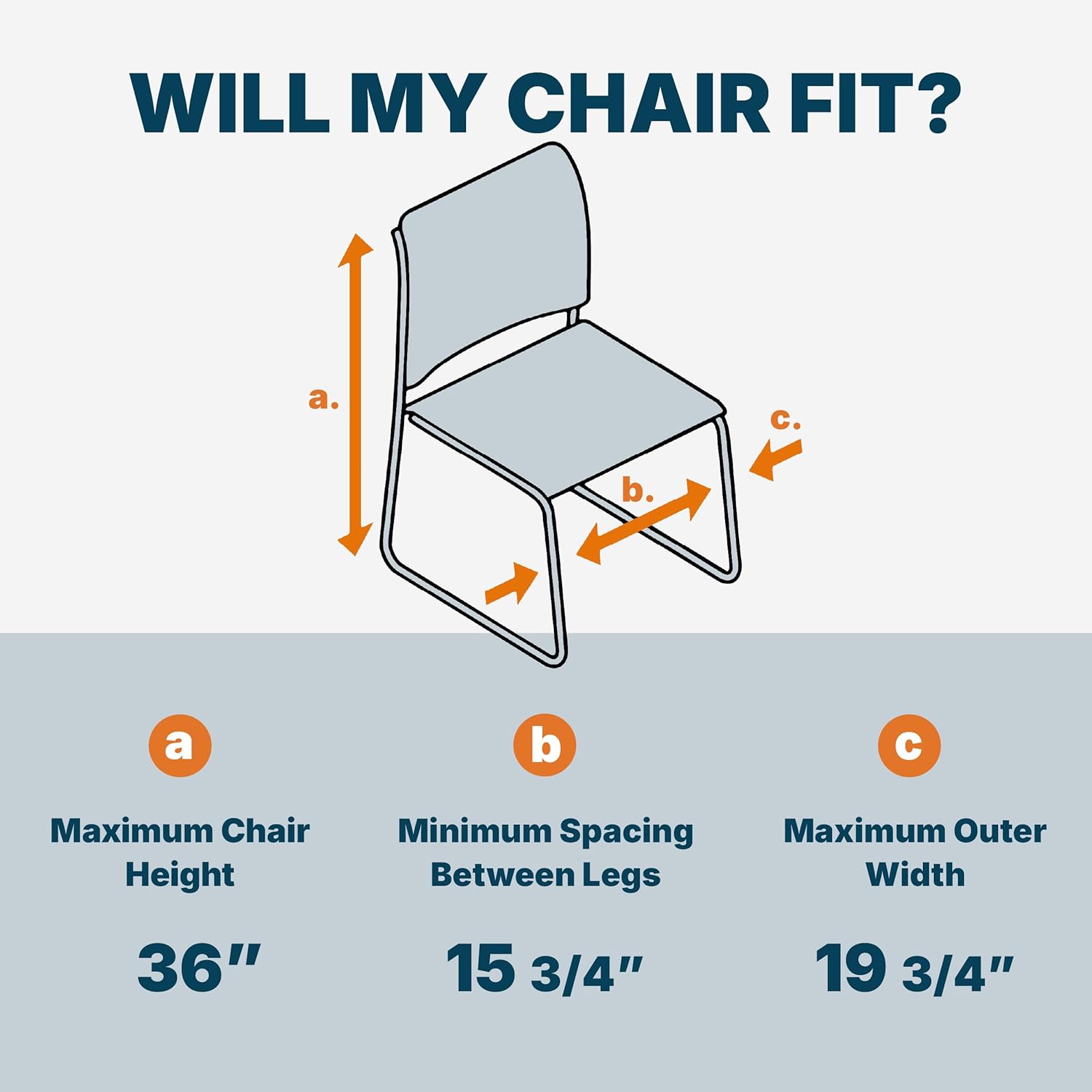 2.【 QUICK, SECURE LOADS 】 Wide cradle spacing and smooth contact rails let you stack and unstack quickly without nicking frames. Tested to hold ~40 stacking chairs. Compatible with Series and fits most stacking chairs; capacity varies by chair design — figures shown are based on tests with our models and typical stacking geometry.