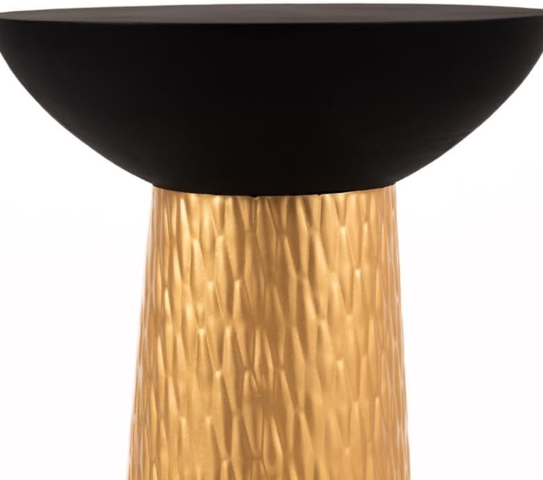 - Tall Modern Accent Hourglass Design Drink Table with Gold Hammered Metal Base and Black Wooden Bowl Top – Sculptural Round Pedestial Side Table for Small Spaces, Living Room, Bedroom,Assembled B0F6WSPJW9