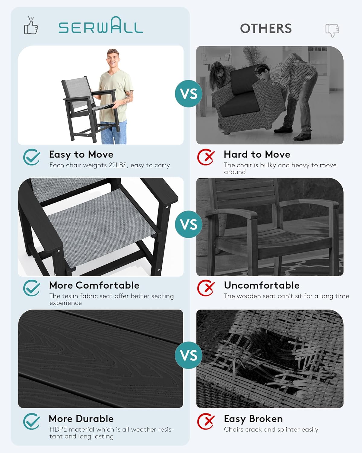 - SERWALL Textilene Outdoor Dining Chair Set of 2, HDPE Frame with Textile Chair Seat, Holds up to 300 LBS, All Weather Chairs for Lawn, Garden, Yard and Poolside, Black B0CXDT8Q4Y