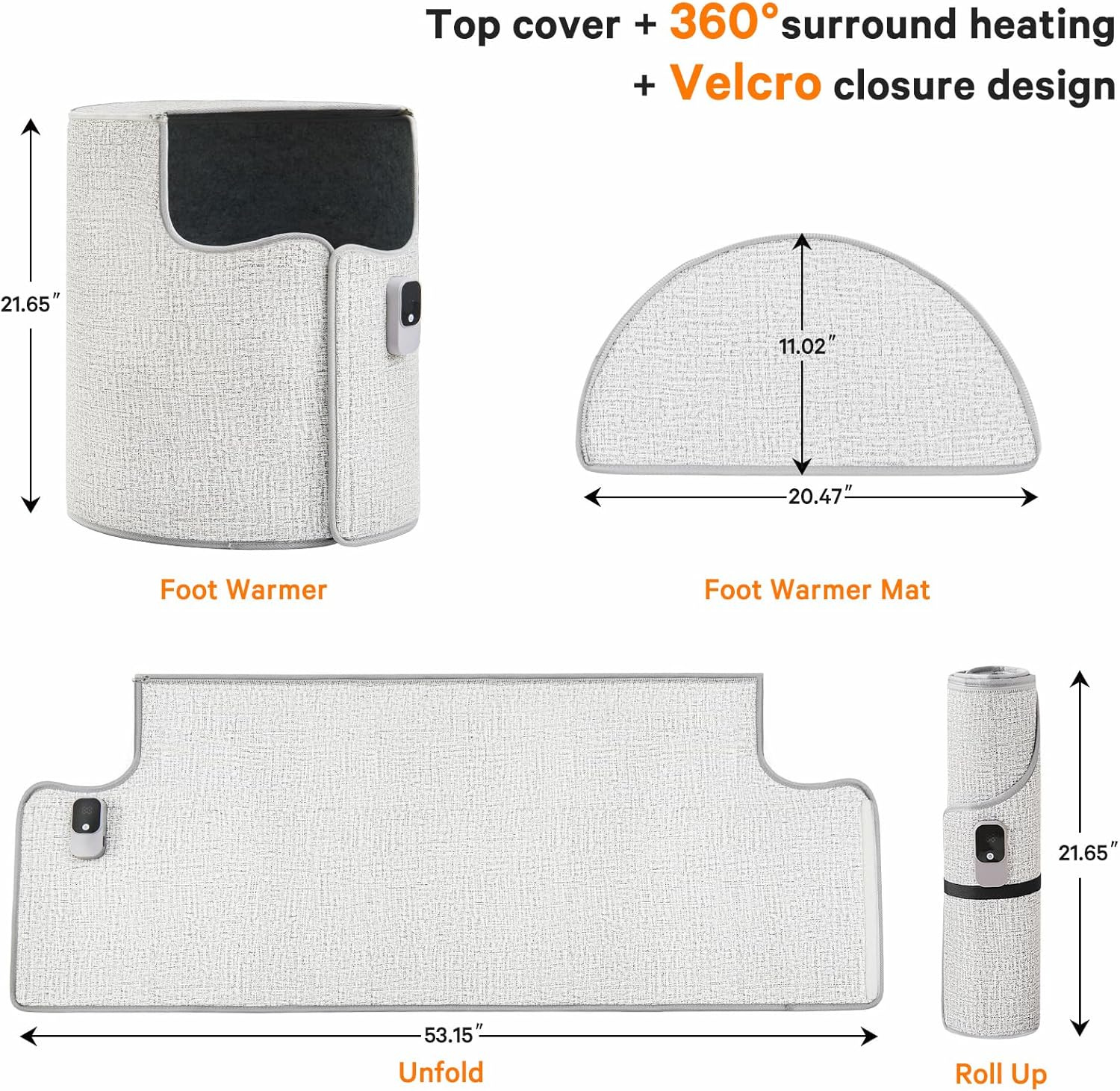 4. Dimensions & User Groups - This office heater(53" circumference ×22" height) keeps feet warm perfect for adults, tall individuals, people with large builds, middle-aged people, those with long legs, multi-pet households, and office workers. Functions as both foot warmers for men and ceramic space heater, featuring ultra-silent operation ideal as office heater under desk quiet, It provides cozy comfort as indoor space heater. Enjoy all-day warmth at home or in the office.